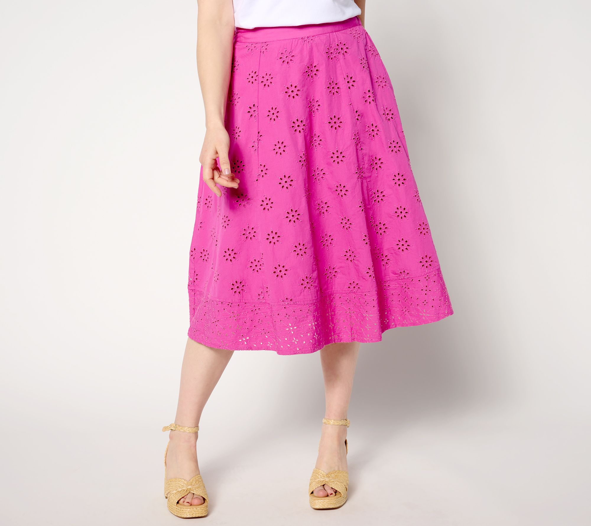 "As Is" Isaac Mizrahi Live! Reg Embroidered Cotton Eyelet Midi Skirt