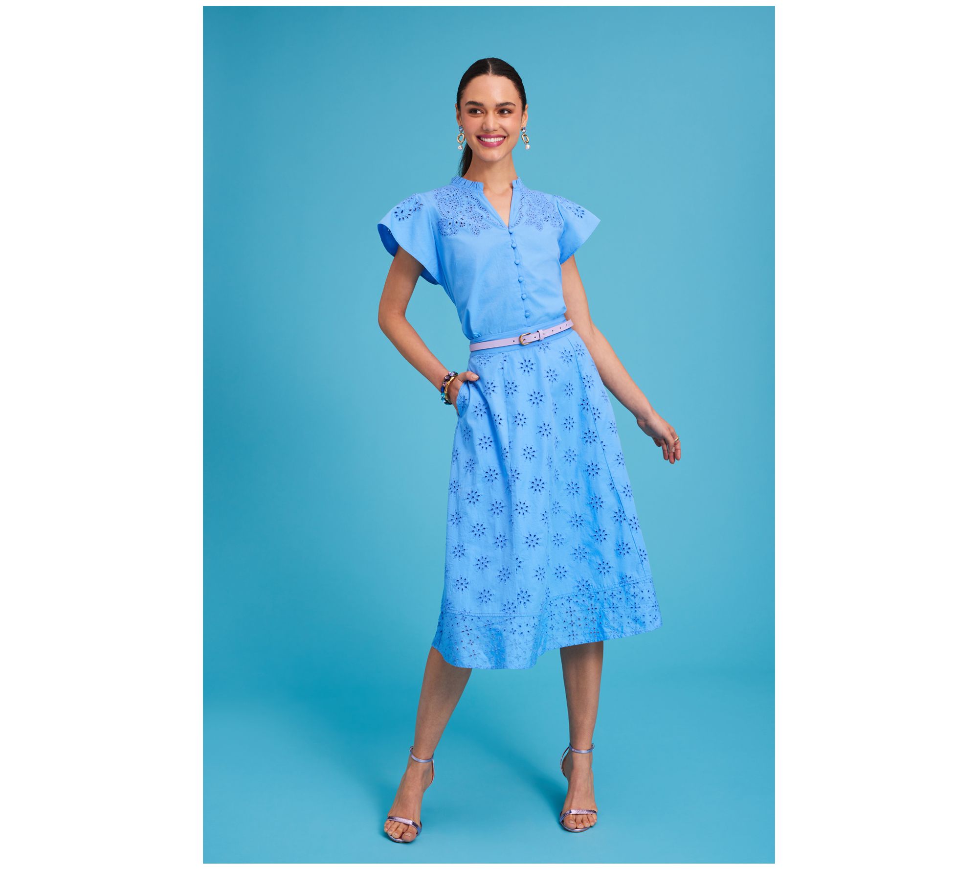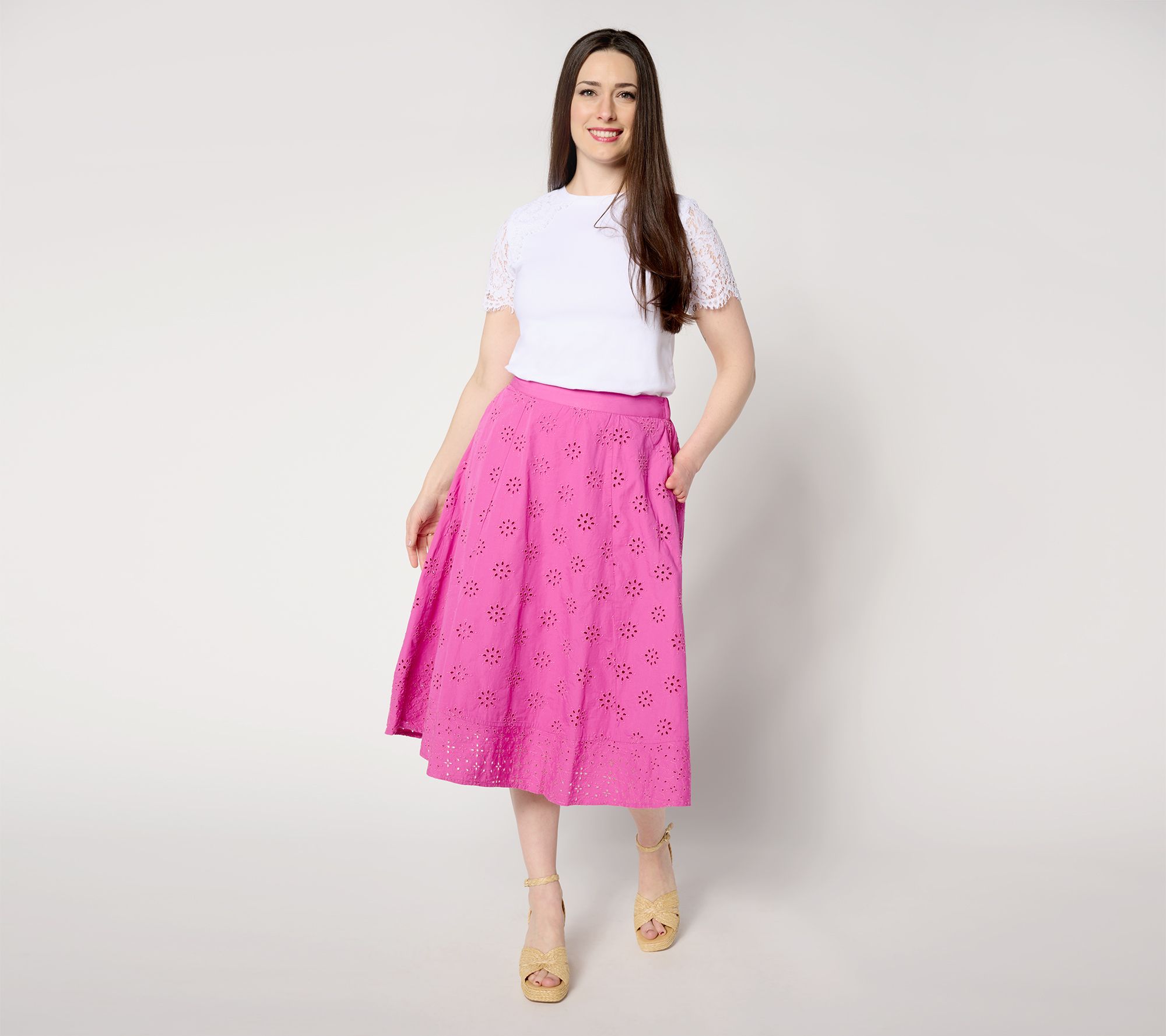 All eyes on eyelet! There's something just so summery about eyelet embroidery. Enjoy this breezy, feelin' pretty midi skirt made for sunny-day soirees and playful excursions. From Isaac Mizrahi Live!TM.