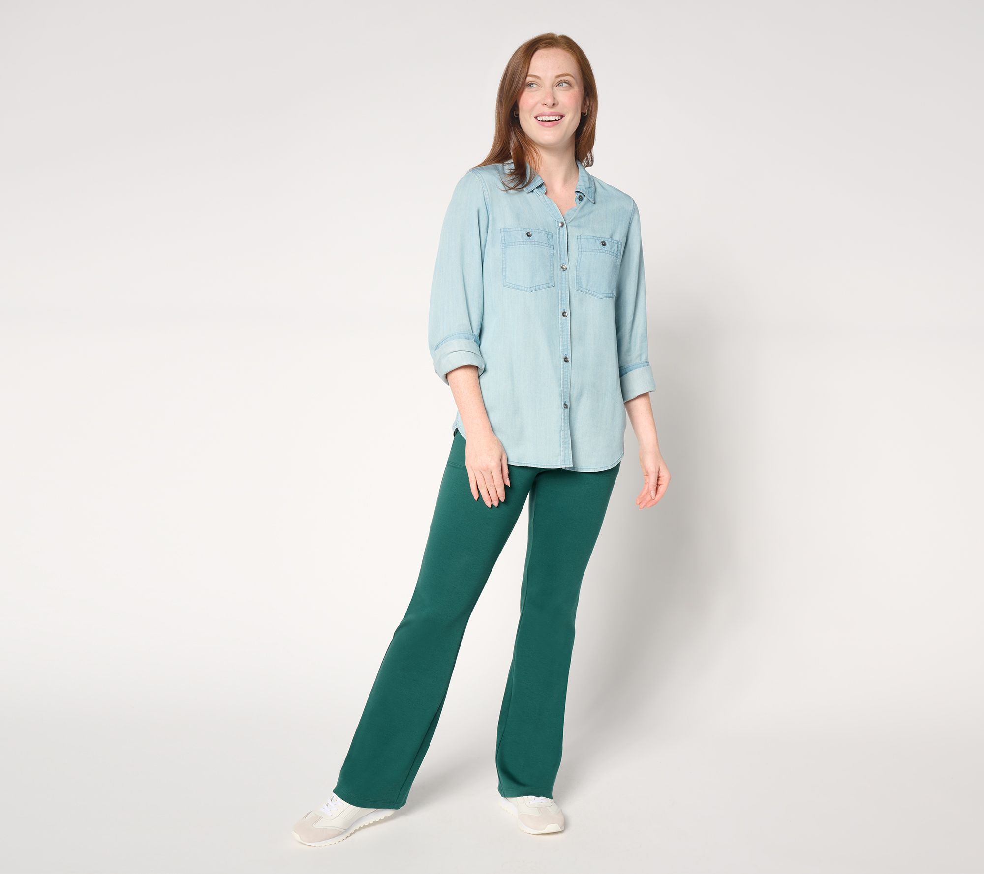 An everyday pant that's ideal for casual and professional settings, these beautiful bottoms offer a blend of softness and stretch. The boot-cut silhouette flatters the figure while complementing a large variety of footwear. From Isaac Mizrahi Live!TM.