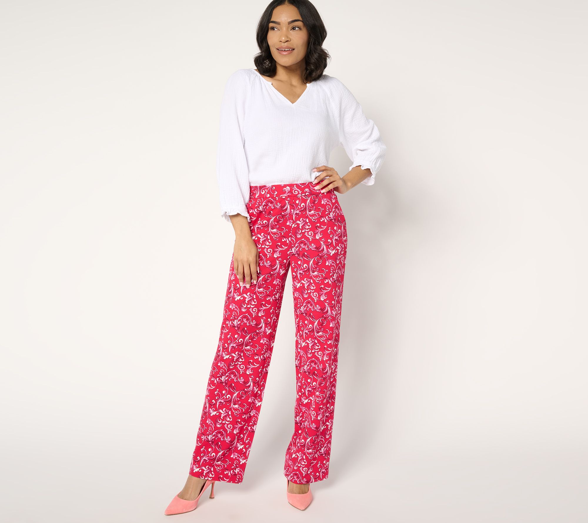 "As Is" Isaac Mizrahi Live! Reg Printed Scuba Crepe Straight Pants