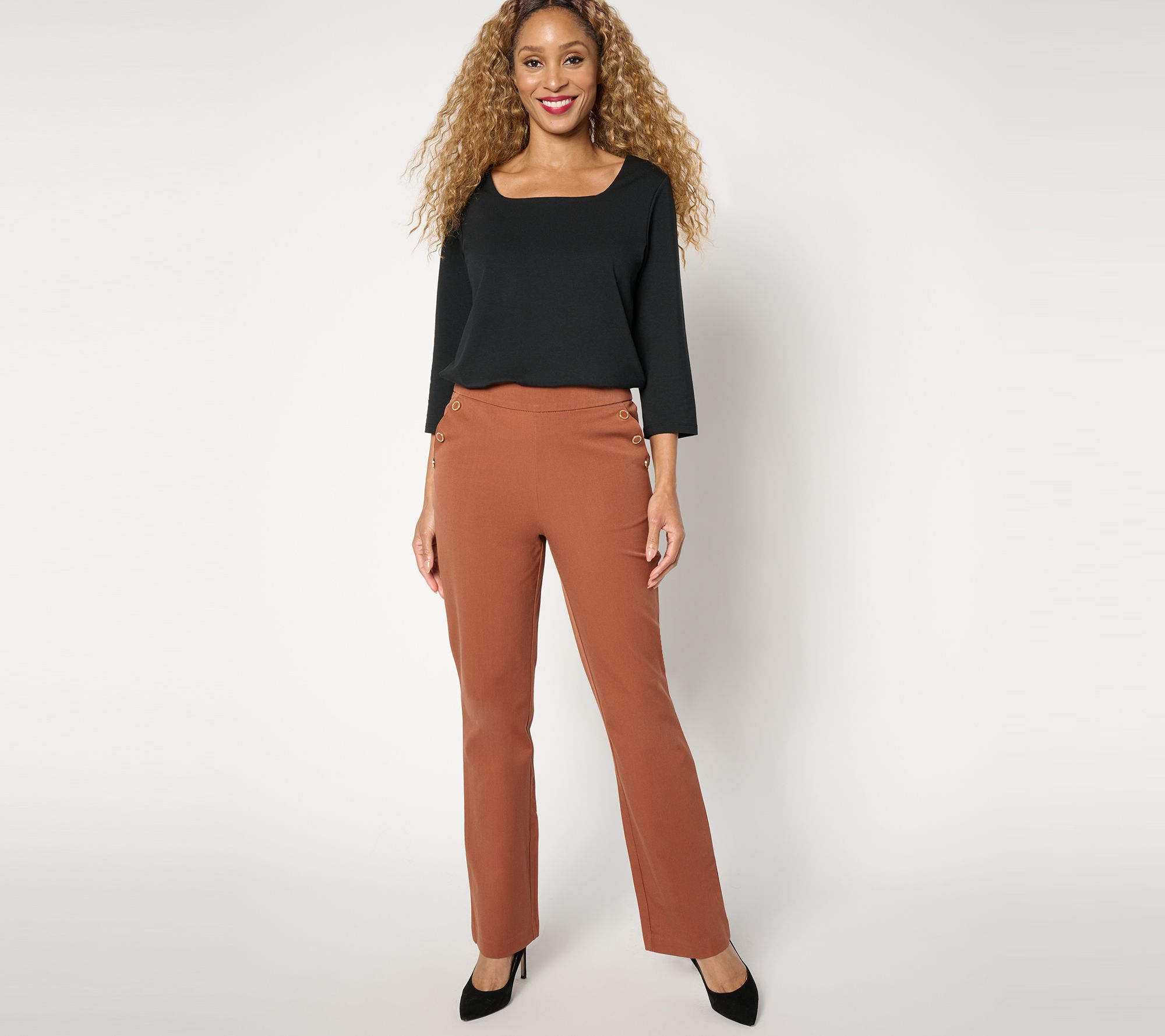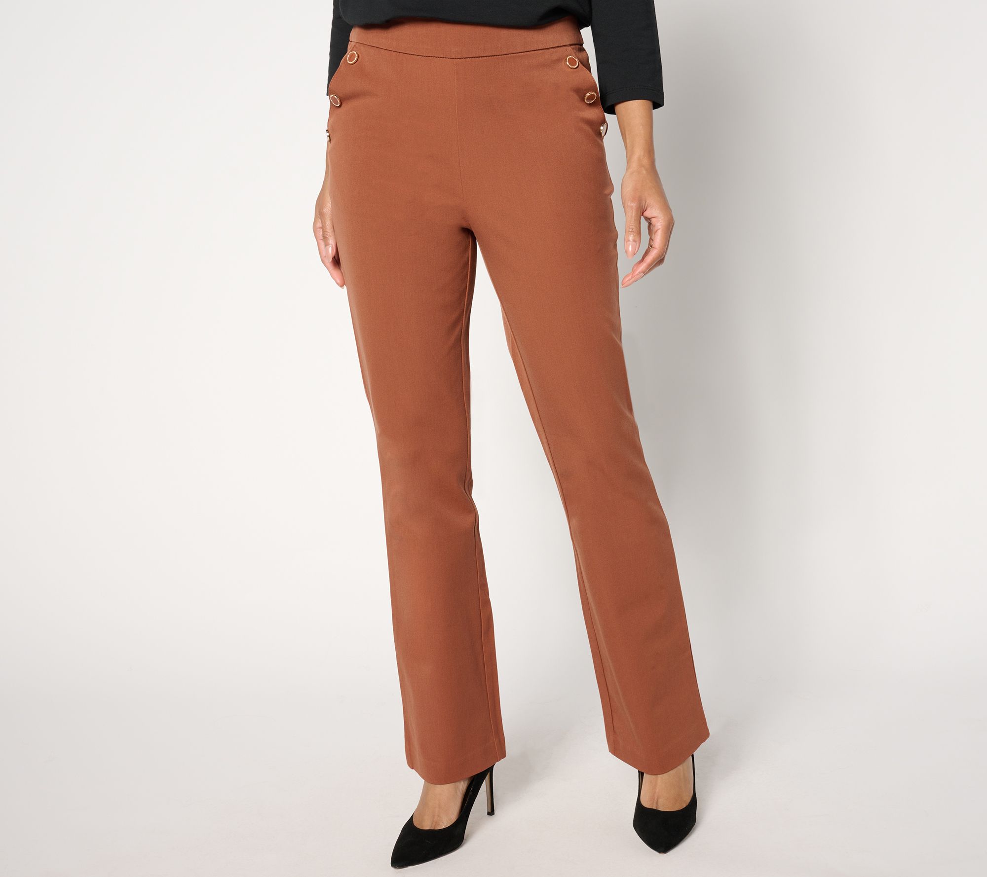 "As Is" Isaac Mizrahi Live! Regular 24/7 Stretch Bootcut Pants w/ Button