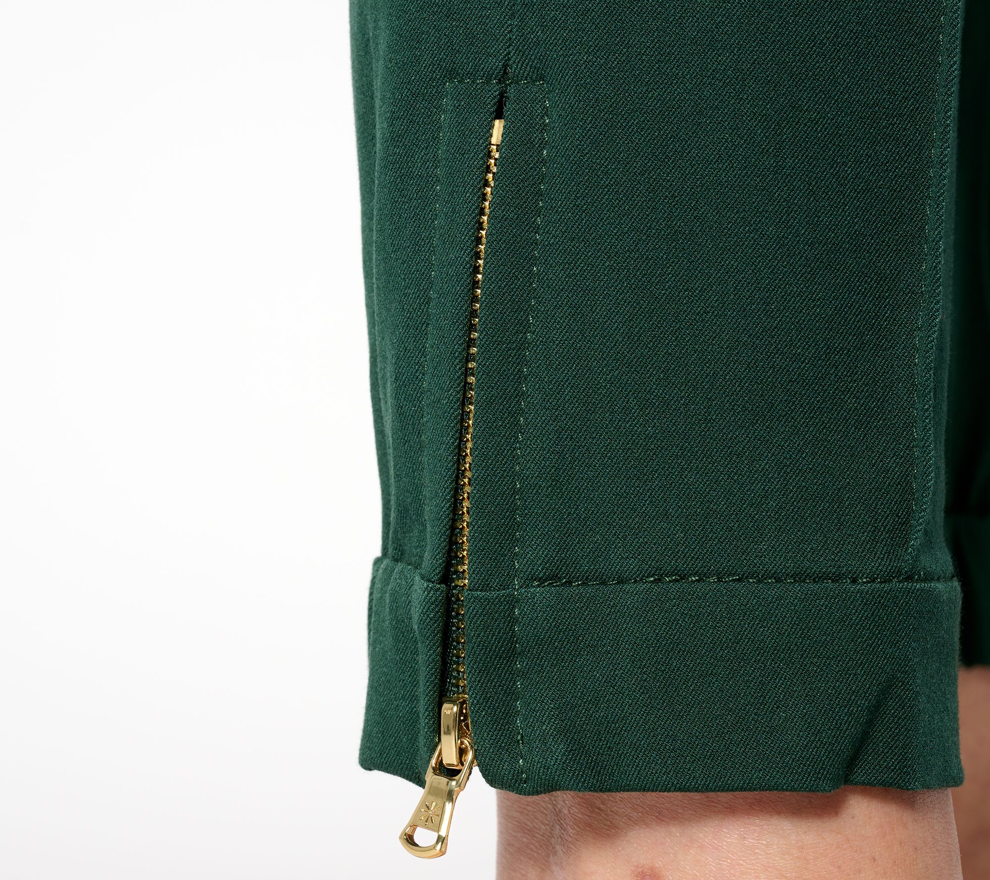 • Features: pull-on style, ankle length, encased elastic, front functional slash pockets, tiny pintuck at leg, encased elastic leg cuff