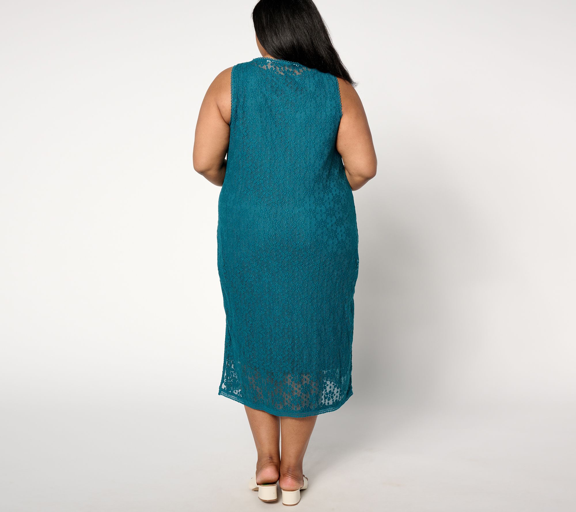 "As Is" Isaac Mizrahi Live! Regular Crochet Lace Midi Dress
