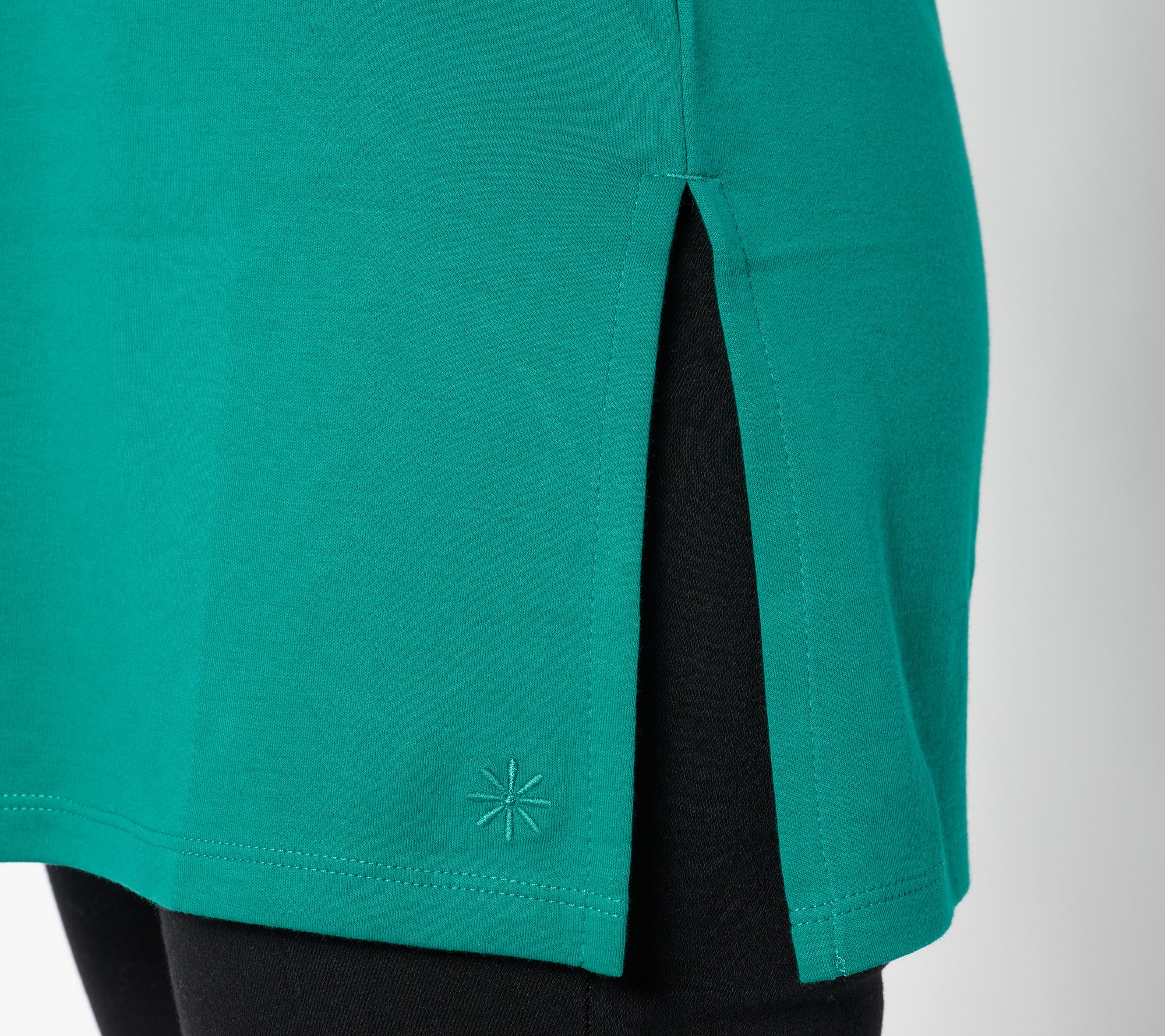 • Features: square neck, 3/4-length sleeves, tall side slits, straight hem
