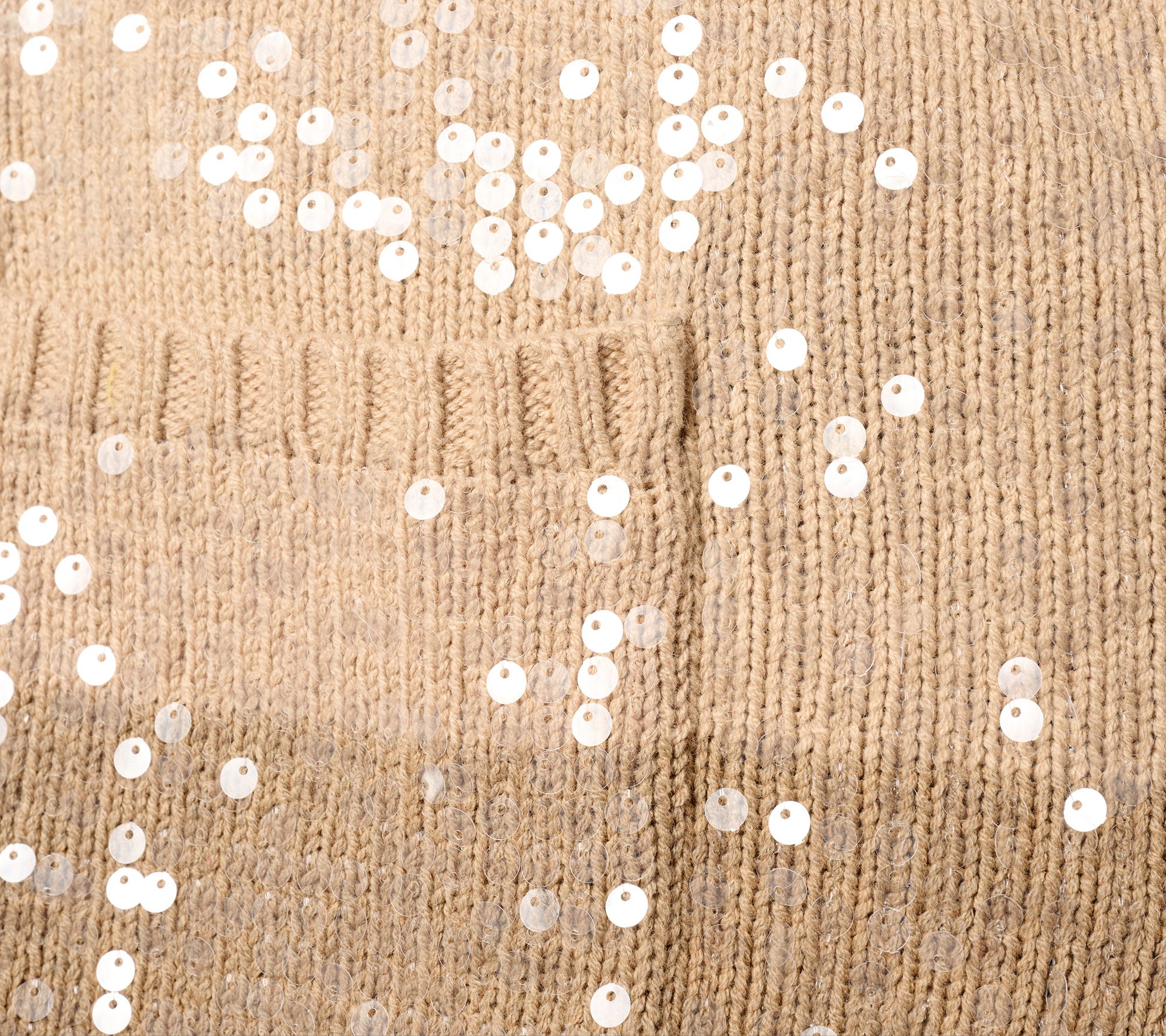 • Features: stripe design; long blouson sleeves with wide ribbed cuff; front patch pockets; paillettes on body, sleeves, and pockets