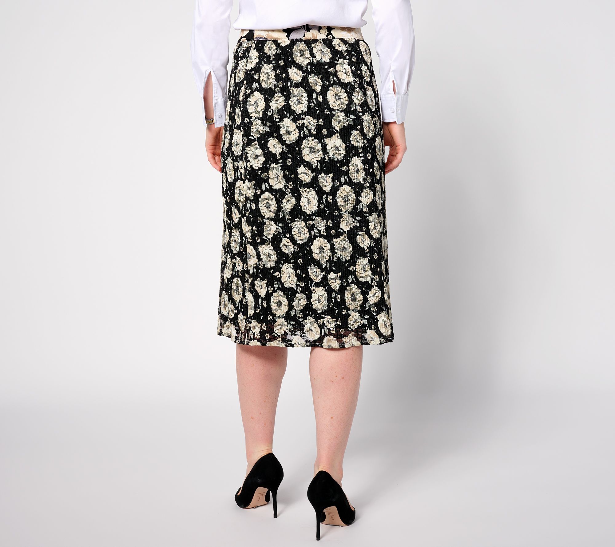 "As Is" Isaac Mizrahi Live! Regular Printed Lace Pleated Midi Skirt
