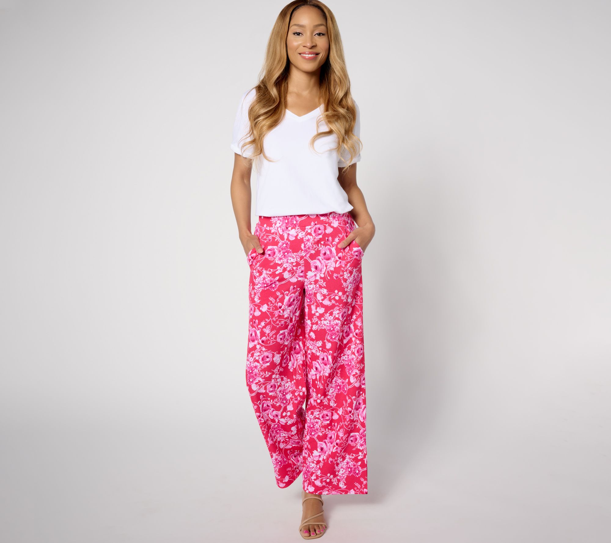 Behold the power of the flower! These pretty pebble-knit pants with a statement print fill up your cup with good vibes only. From Isaac Mizrahi Live!TM.