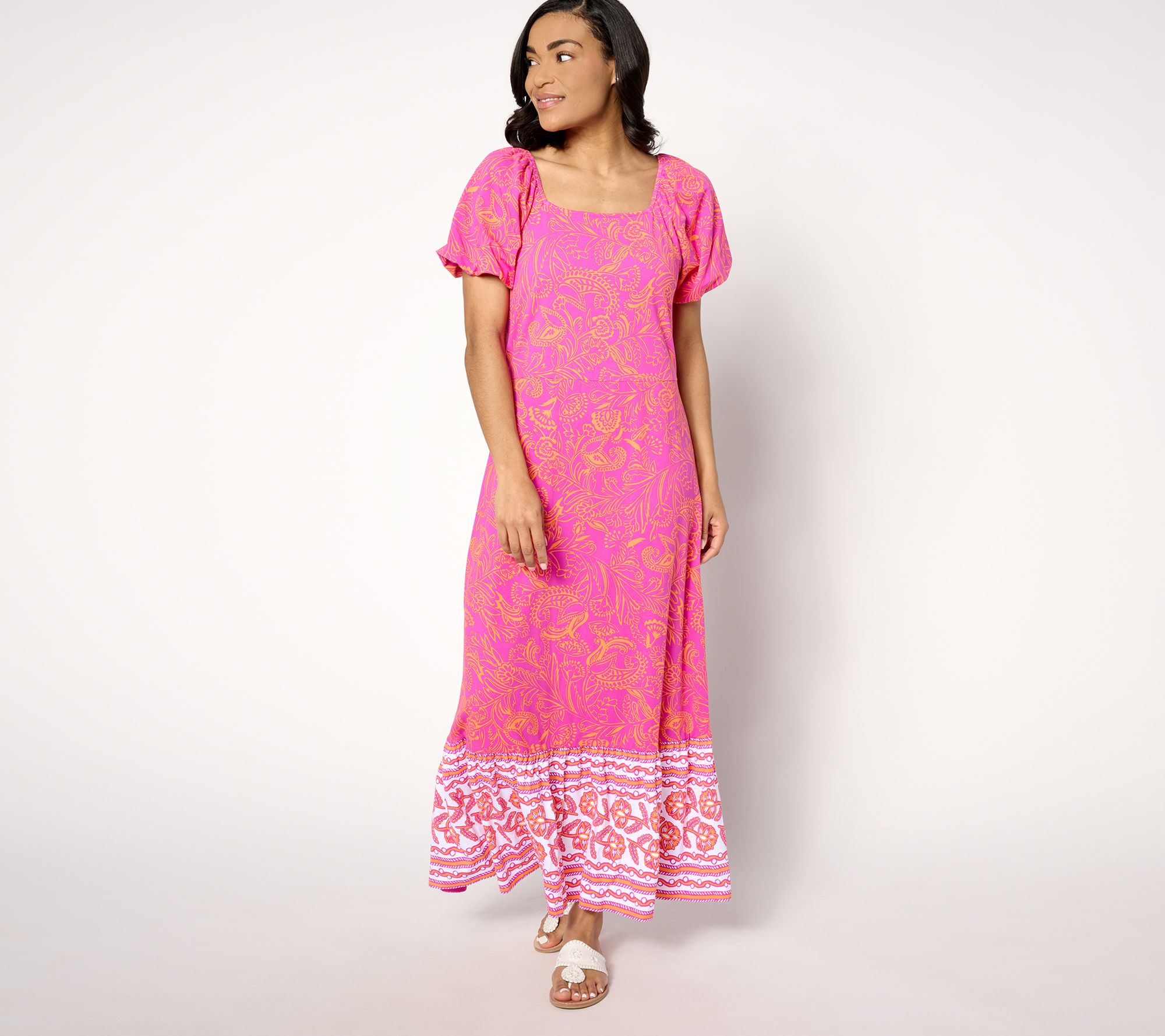 "As Is" Isaac Mizrahi Live! Regular Printed Puff Sleeve Midi Dress
