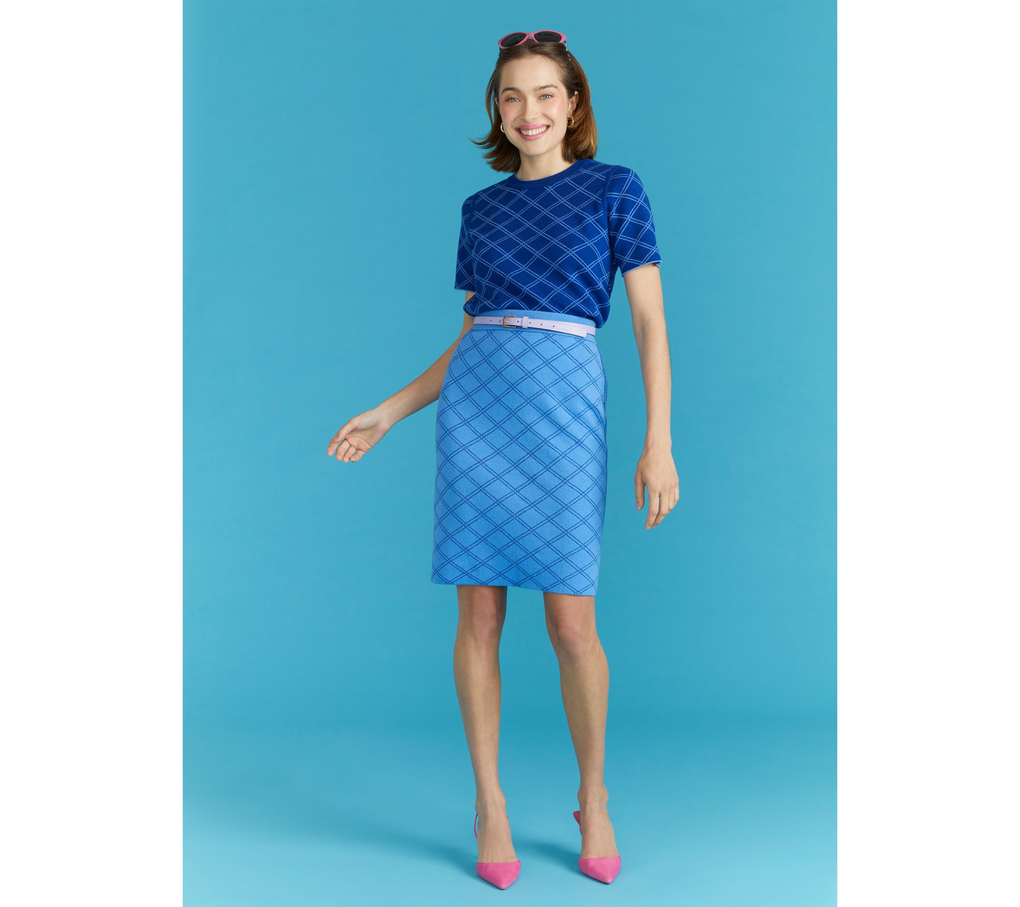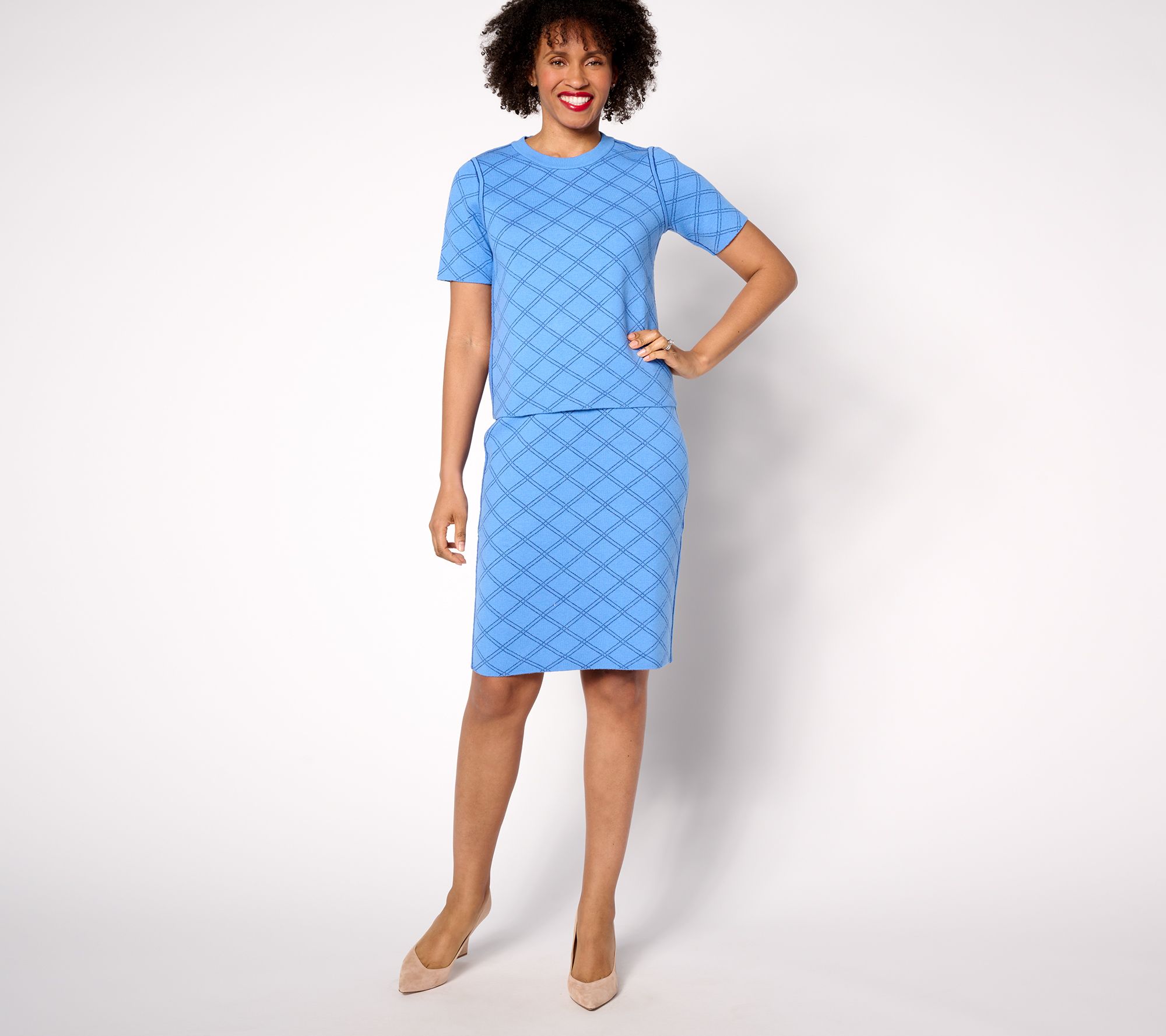 It's always a good day when you get two for the price of one. That means today's a good day! This fresh find from Isaac Mizrahi features a darling diamond jacquard pattern that just happens to be reversible -- giving you two color options all in one softly suited sweater skirt. Sweet! From Isaac Mizrahi Live!TM.