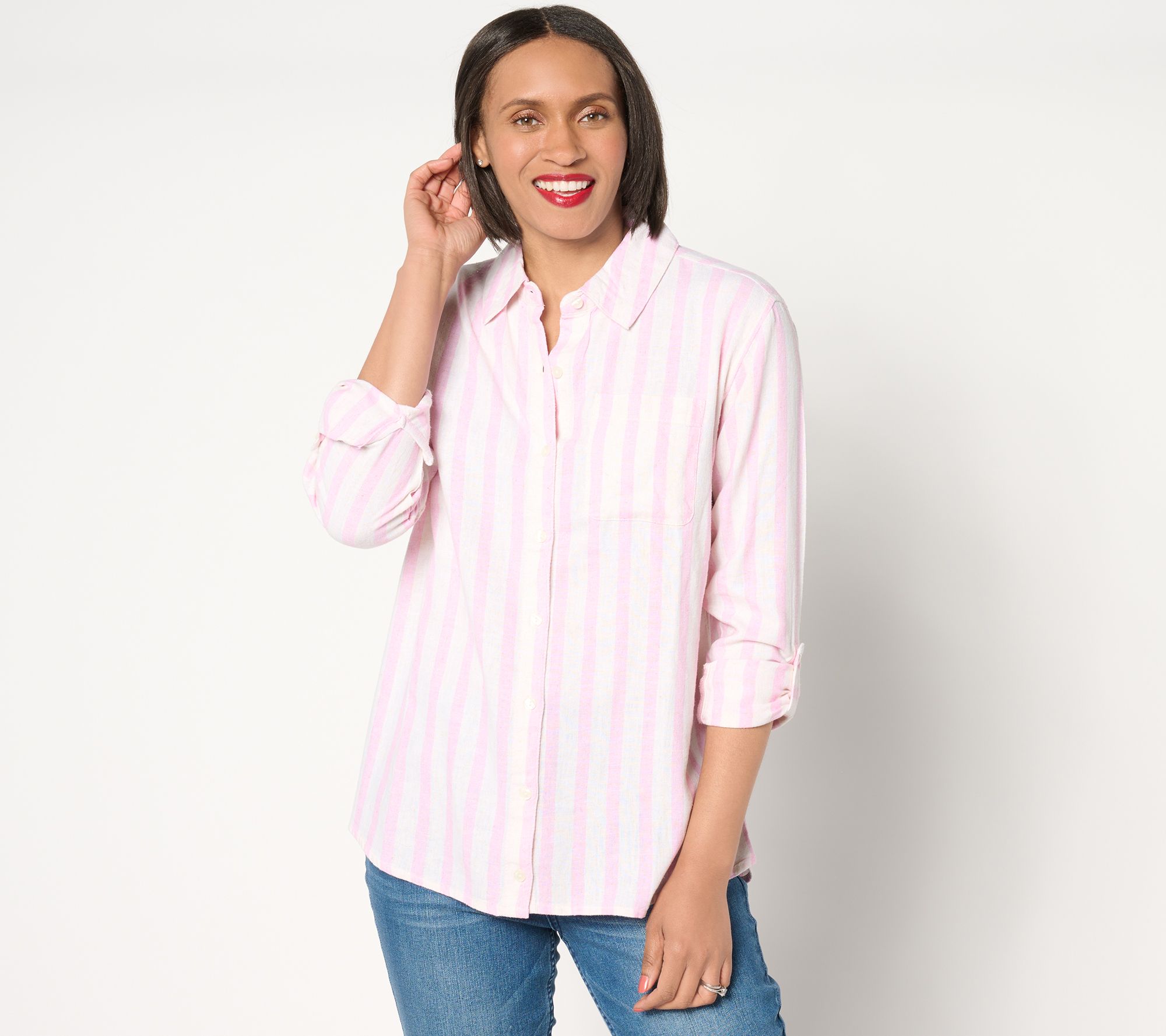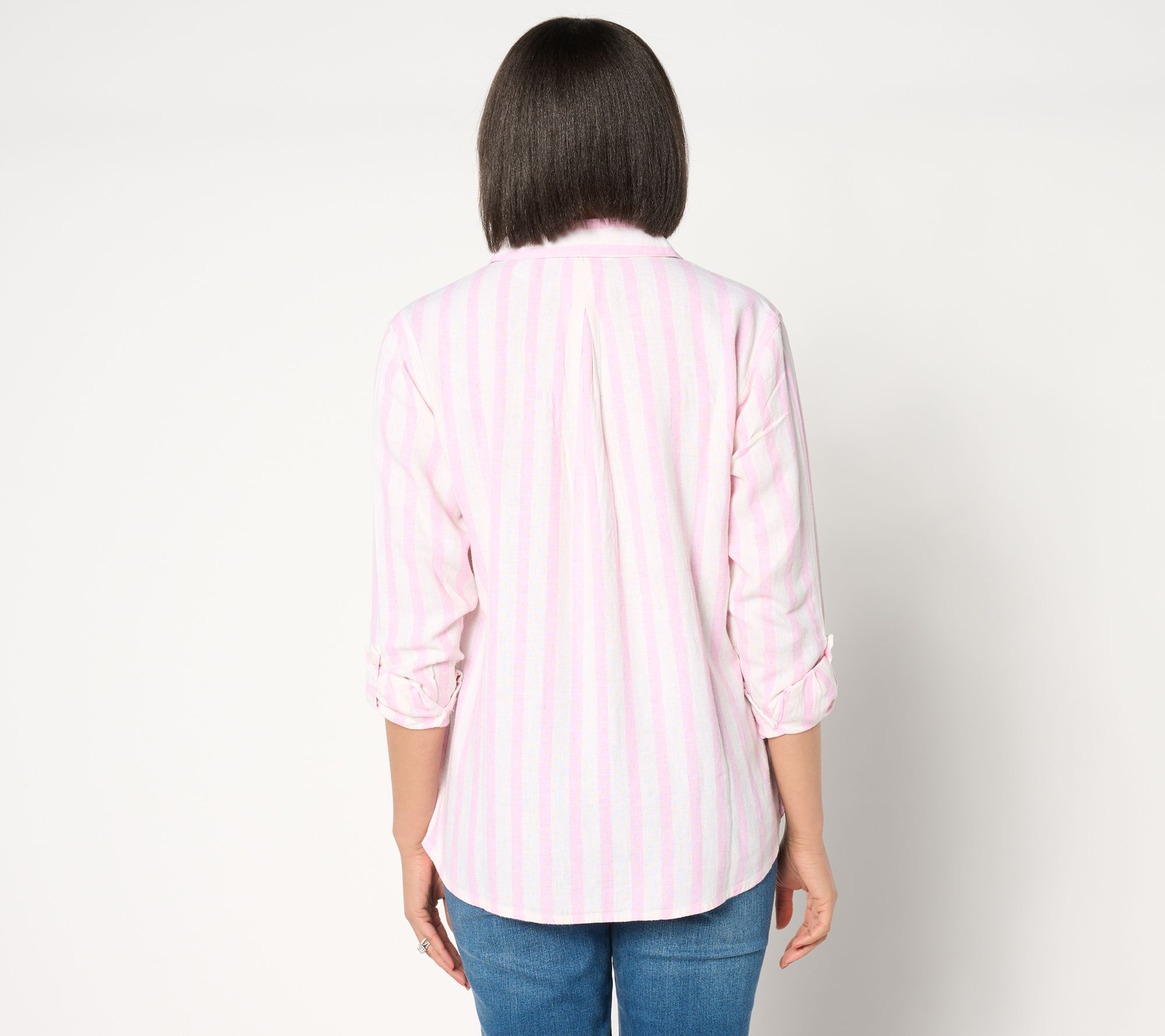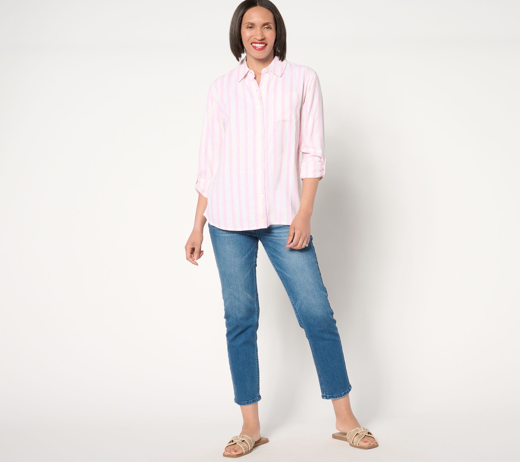 We love a classic striped top that pairs well with anything. Go for a look that's country club chic when you pair this lightweight linen-blend shirt with a pair of khaki pants and boat shoes. From Isaac Mizrahi Live!TM.