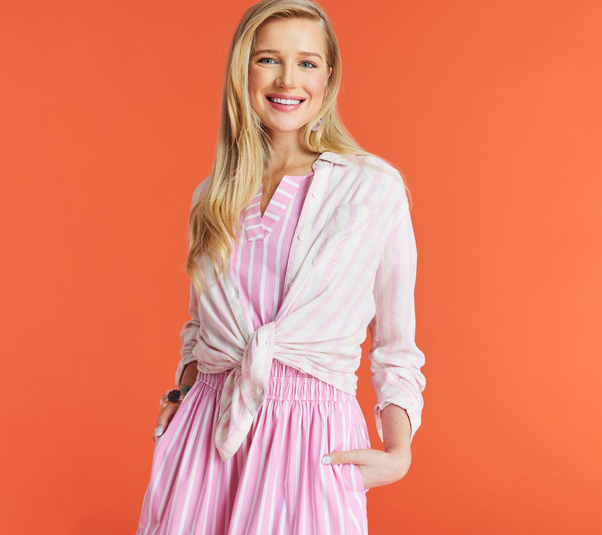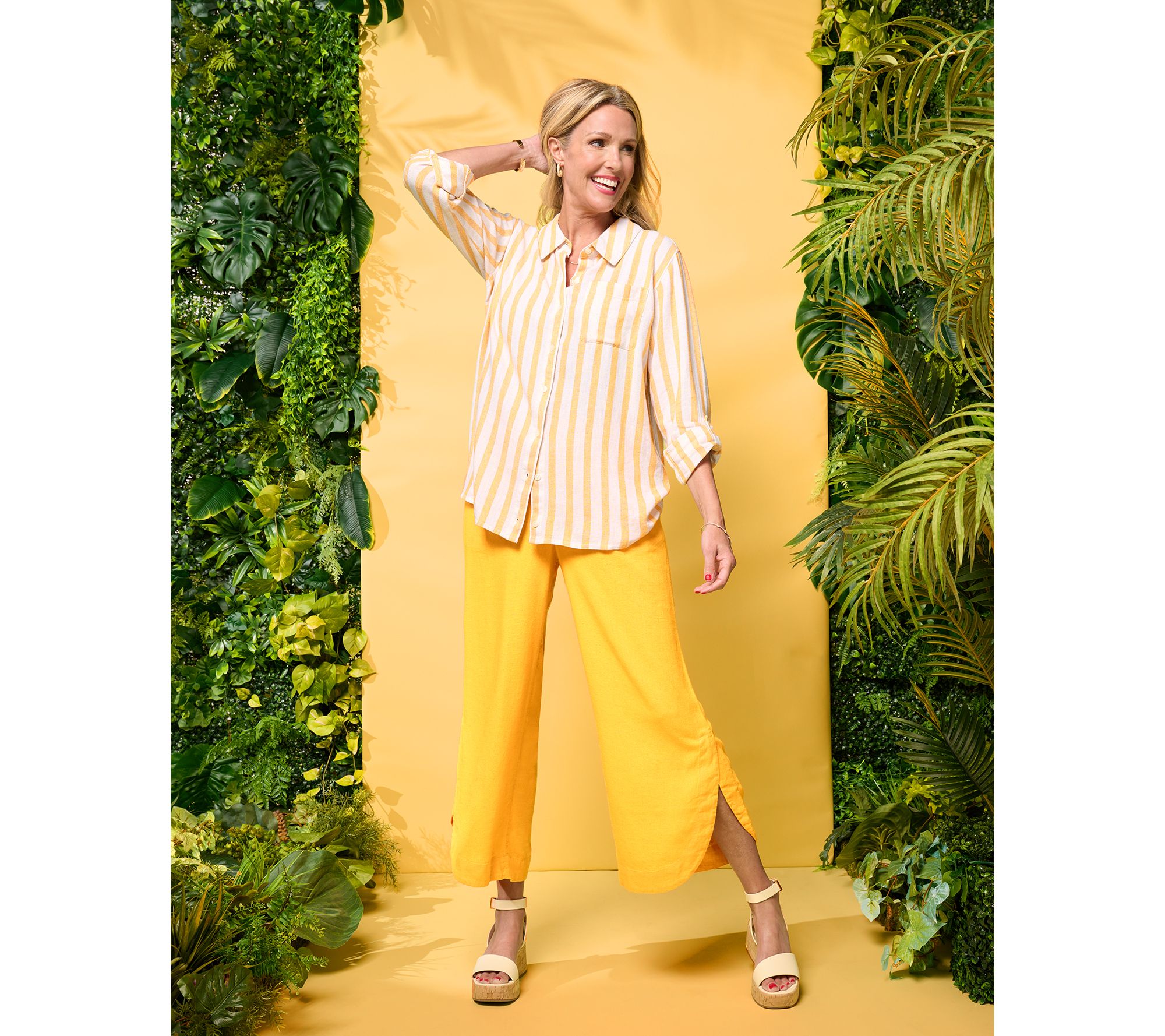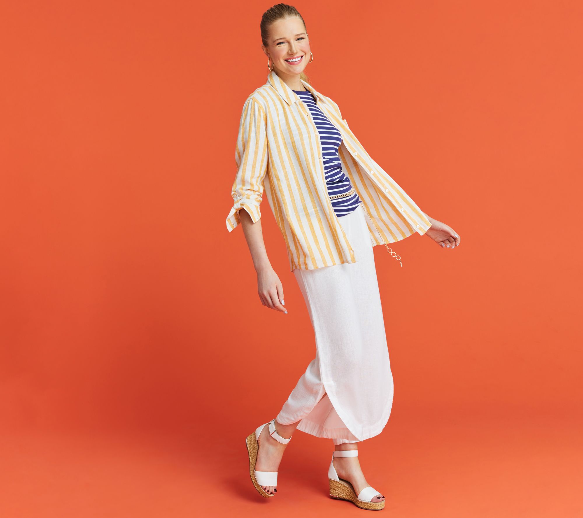 We love a classic striped top that pairs well with anything. Go for a look that's country club chic when you pair this lightweight linen-blend shirt with a pair of khaki pants and boat shoes. From Isaac Mizrahi Live!TM.