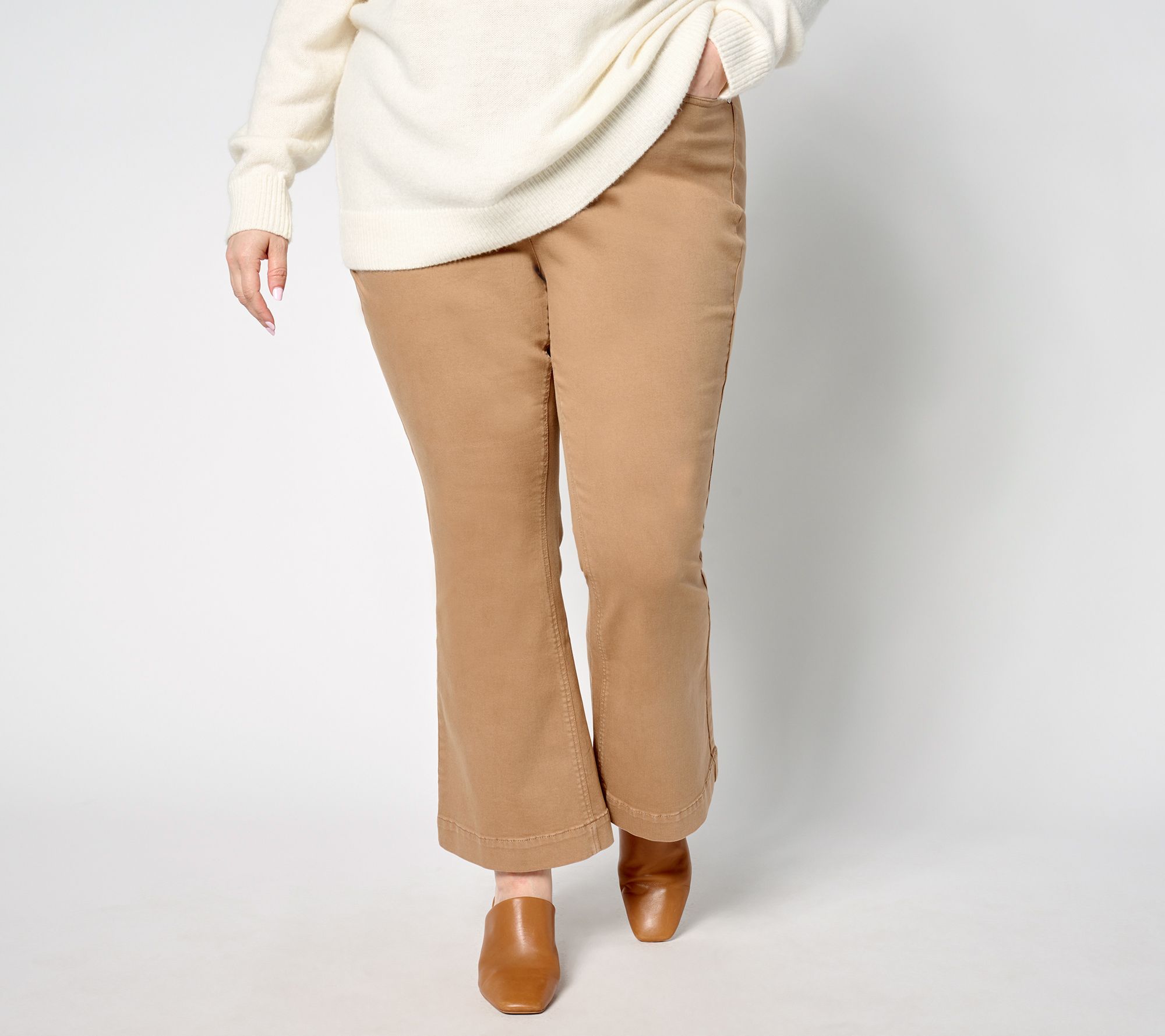 Refreshing your denim on the to-do list? These footwear-ready boot-cut ankle jeans, featuring True Denim construction and a built-in apron for a smoother fit, takes your to-do to a Ta-Da! From Isaac Mizrahi Live!TM.