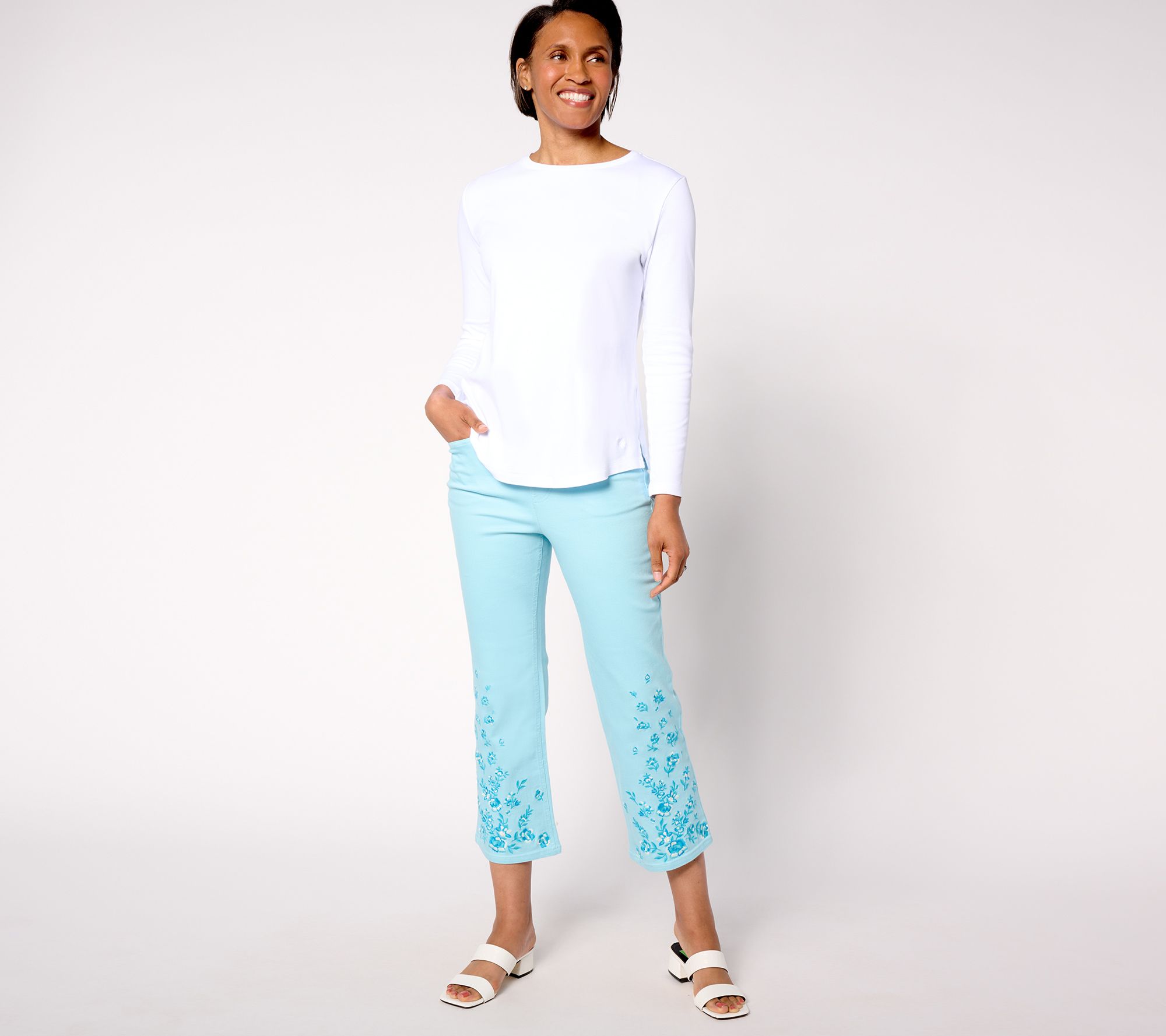 Refresh those well-loved tees and tanks by partnering them with something right on trend -- these charmingly embroidered, wide-leg True Denim jeans in a sandal-approved crop length. From Isaac Mizrahi Live!TM.