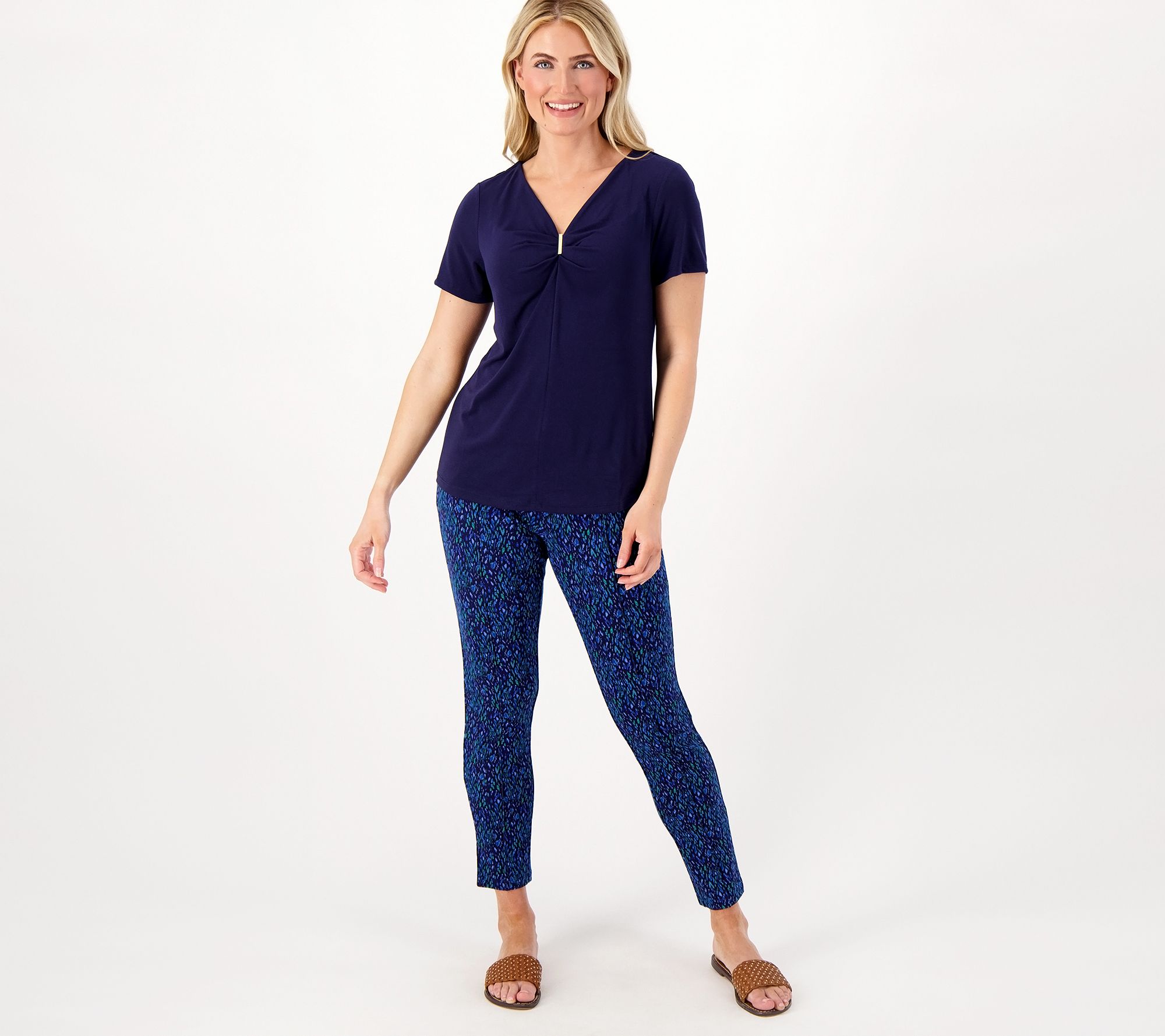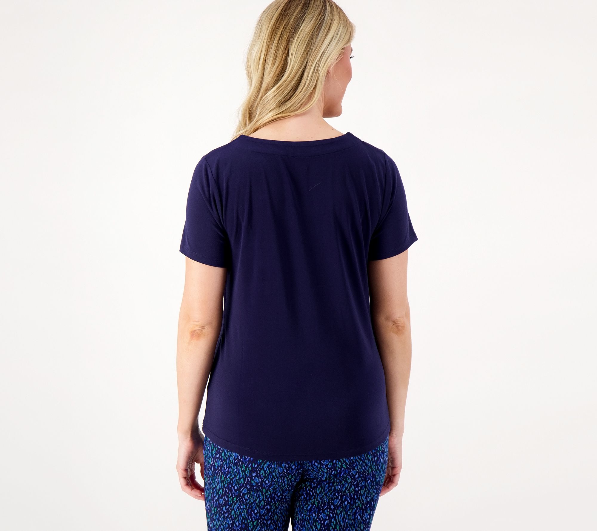 A fusion of classic and contemporary, this short sleeve top boasts a modern silhouette with delicate pleats for a beautifully framed neckline. From Isaac Mizrahi Live!TM.
