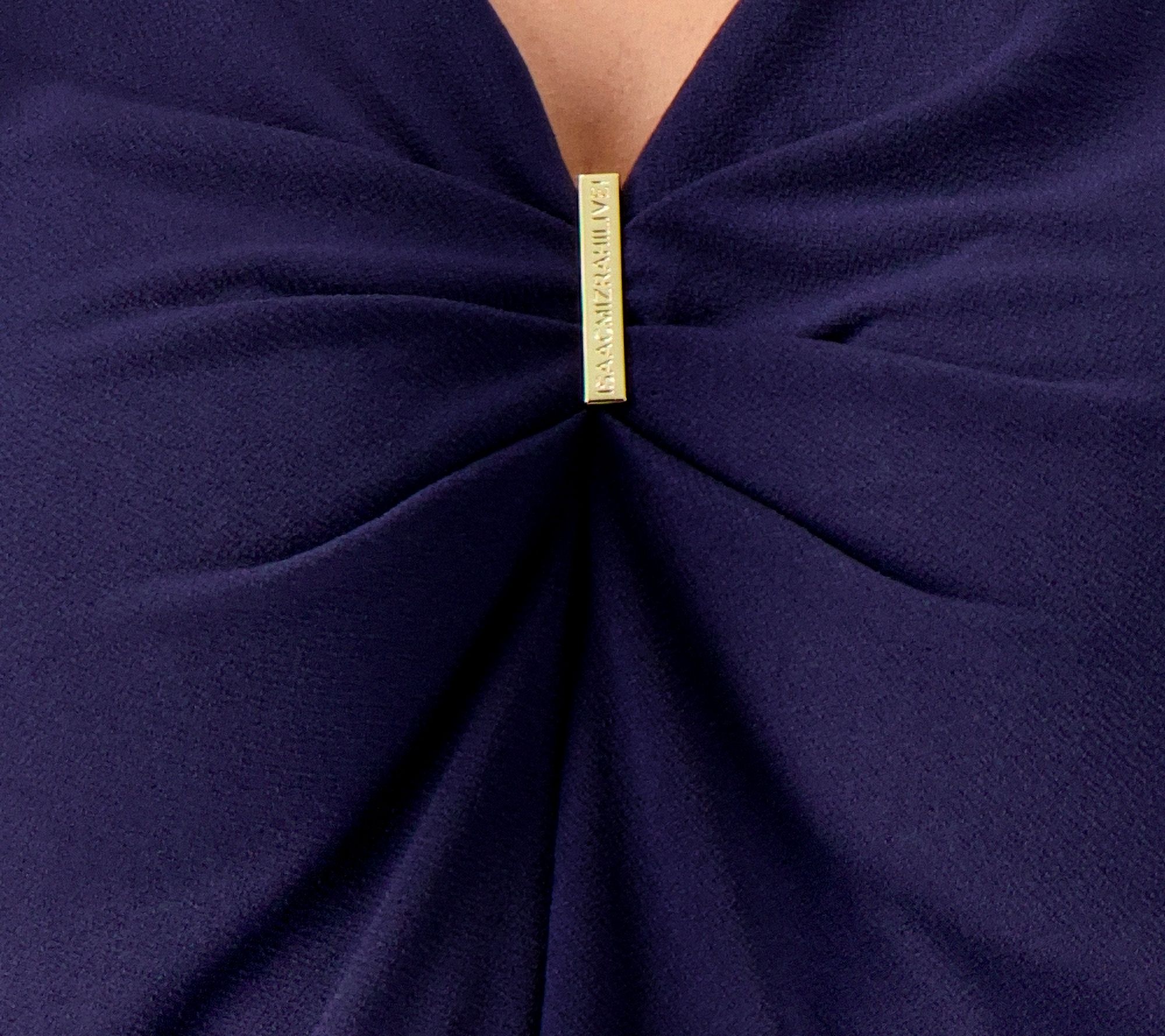 • Features: V-neck, pleat detail, Isaac Mizrahi Live!TM logo gold bar trim at center front, short sleeves