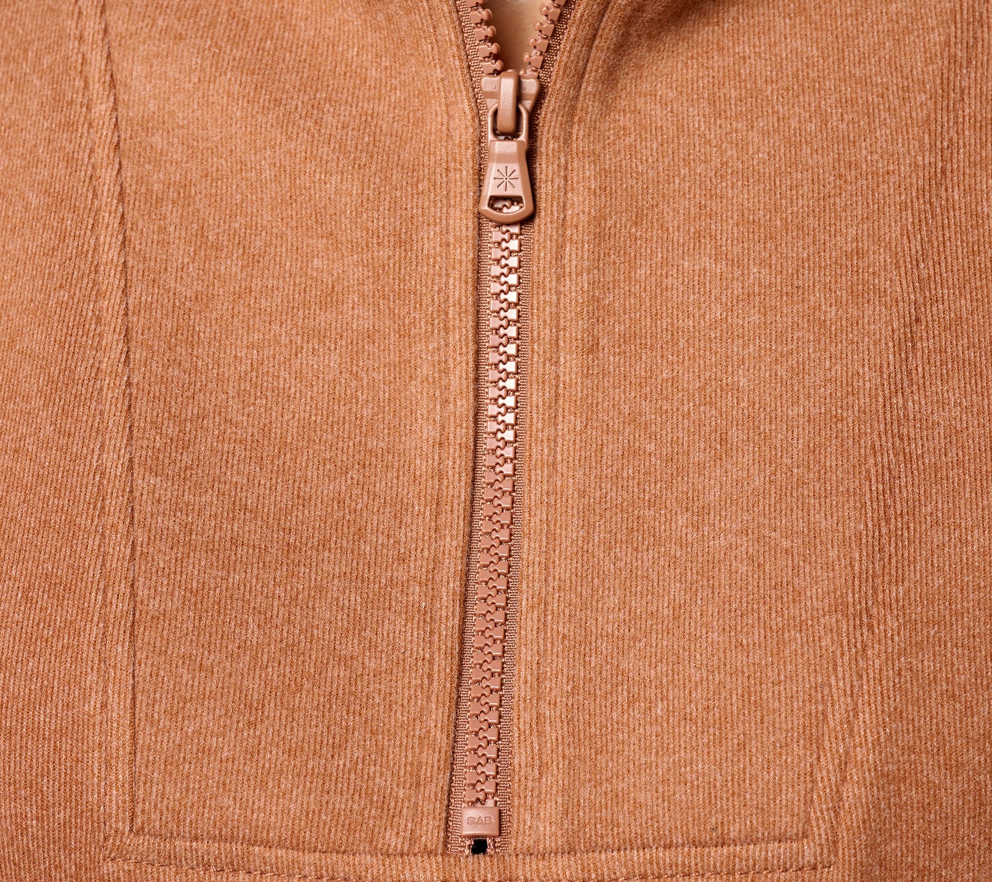 • Features: half-zip closure, long sleeves, funnel neckline, on-seam pockets