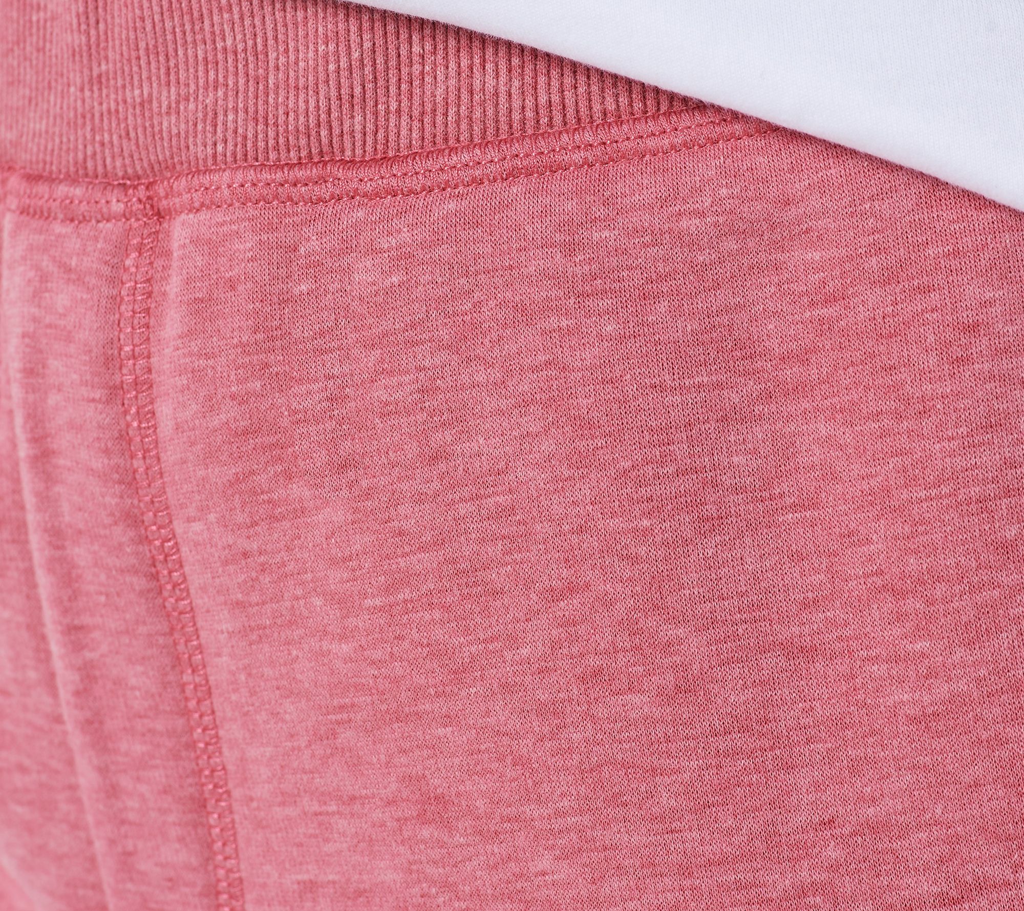 Features: rib double-layer waistband, neon cover-stitch detail, faux-fly with "J" cover-stitch, faux welt-pocket, functional slash pocket with jersey pocket-bag, self turnback hem at pocket and leg opening