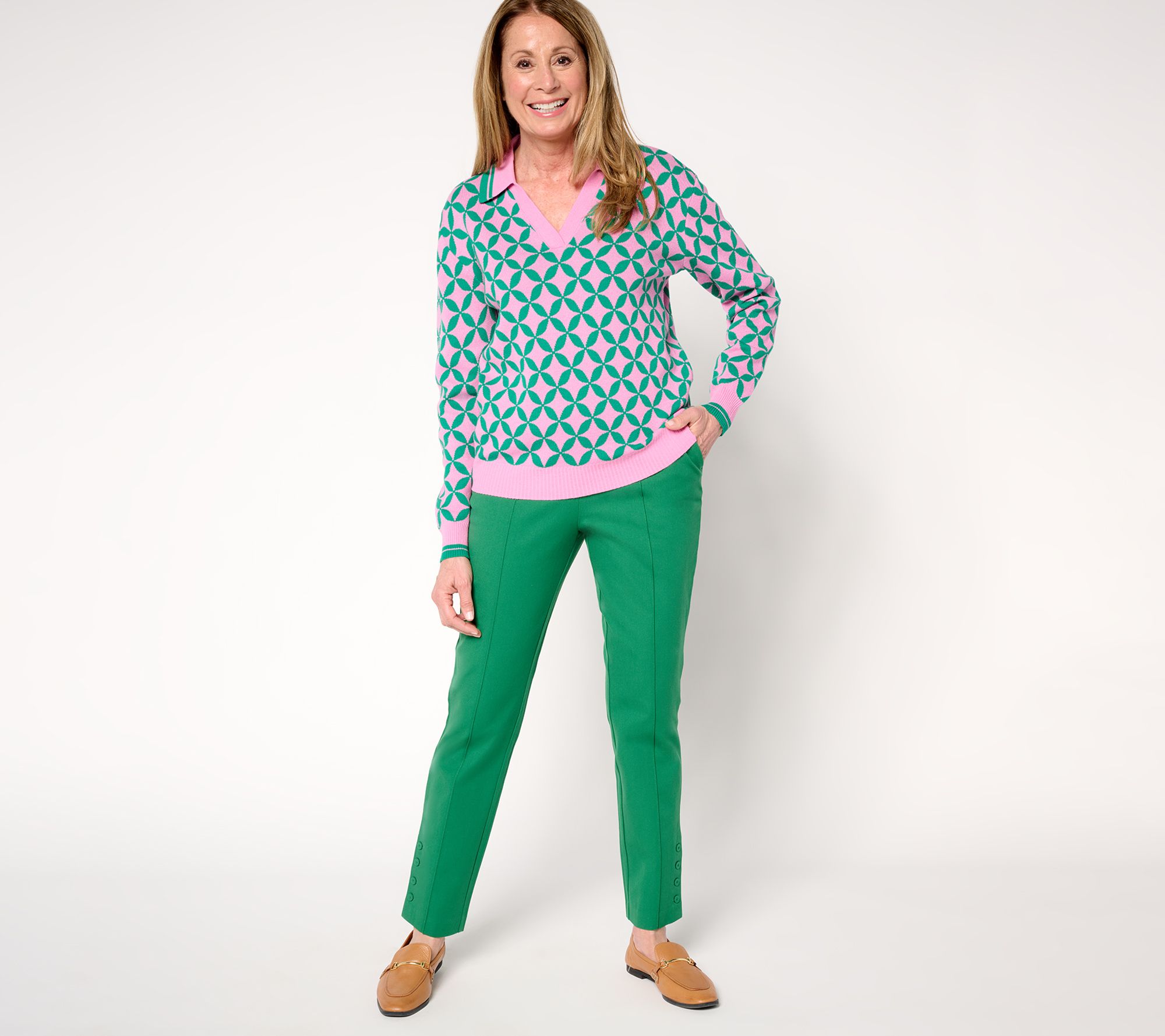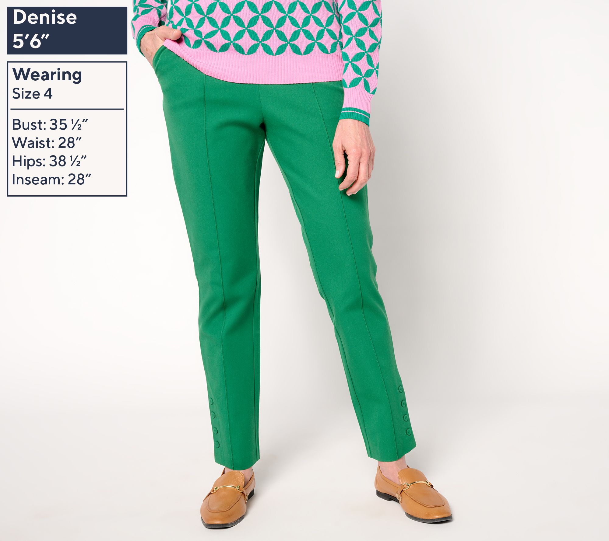 Your most polished and put-together days deserve these ultra-comfortable 24/7 stretch slim straight pants. With a classic pintuck down the center front and functional buttons at the seam vent, every detail enhances the timeless silhouette and chic style. From Isaac Mizrahi Live!TM.