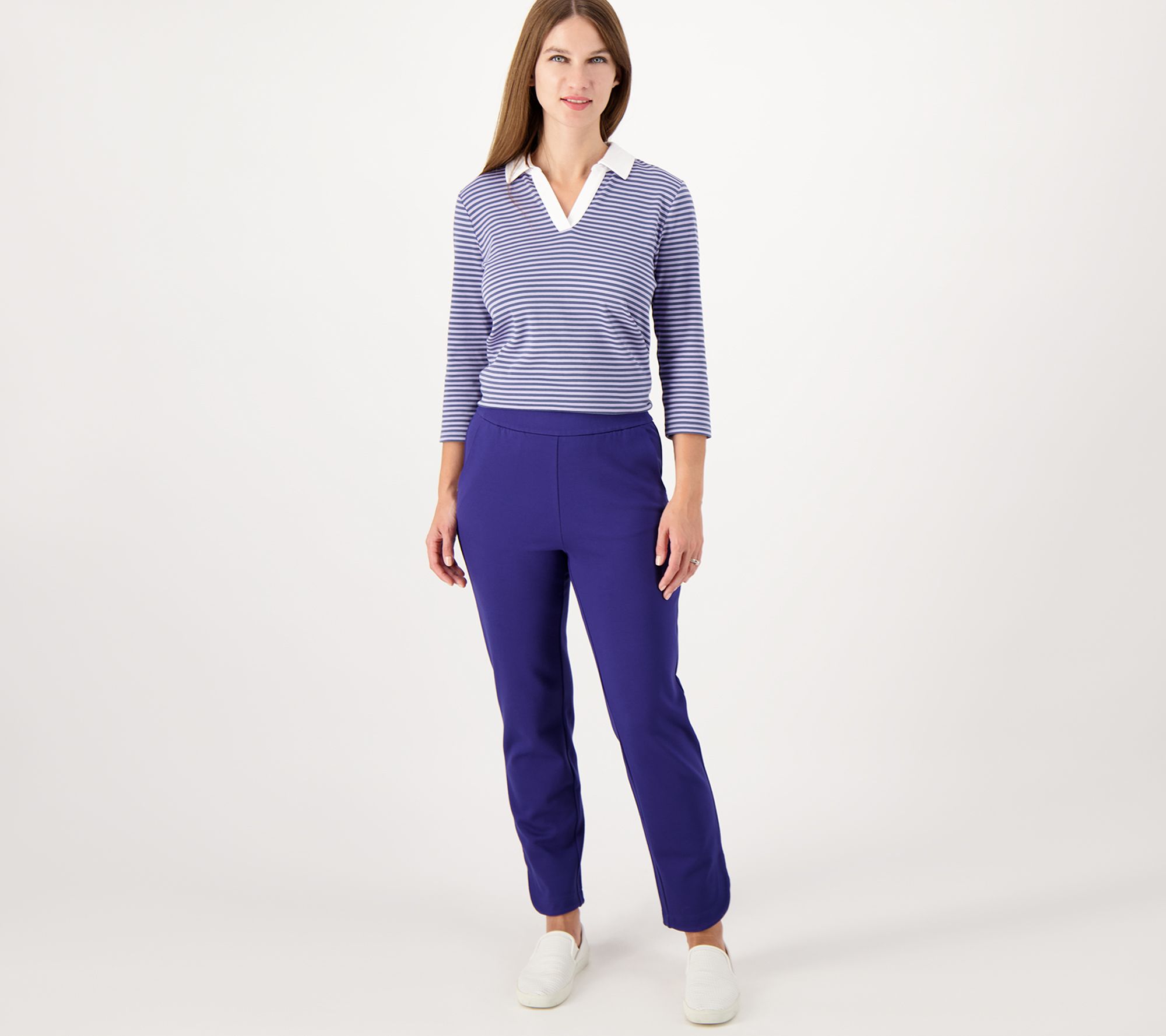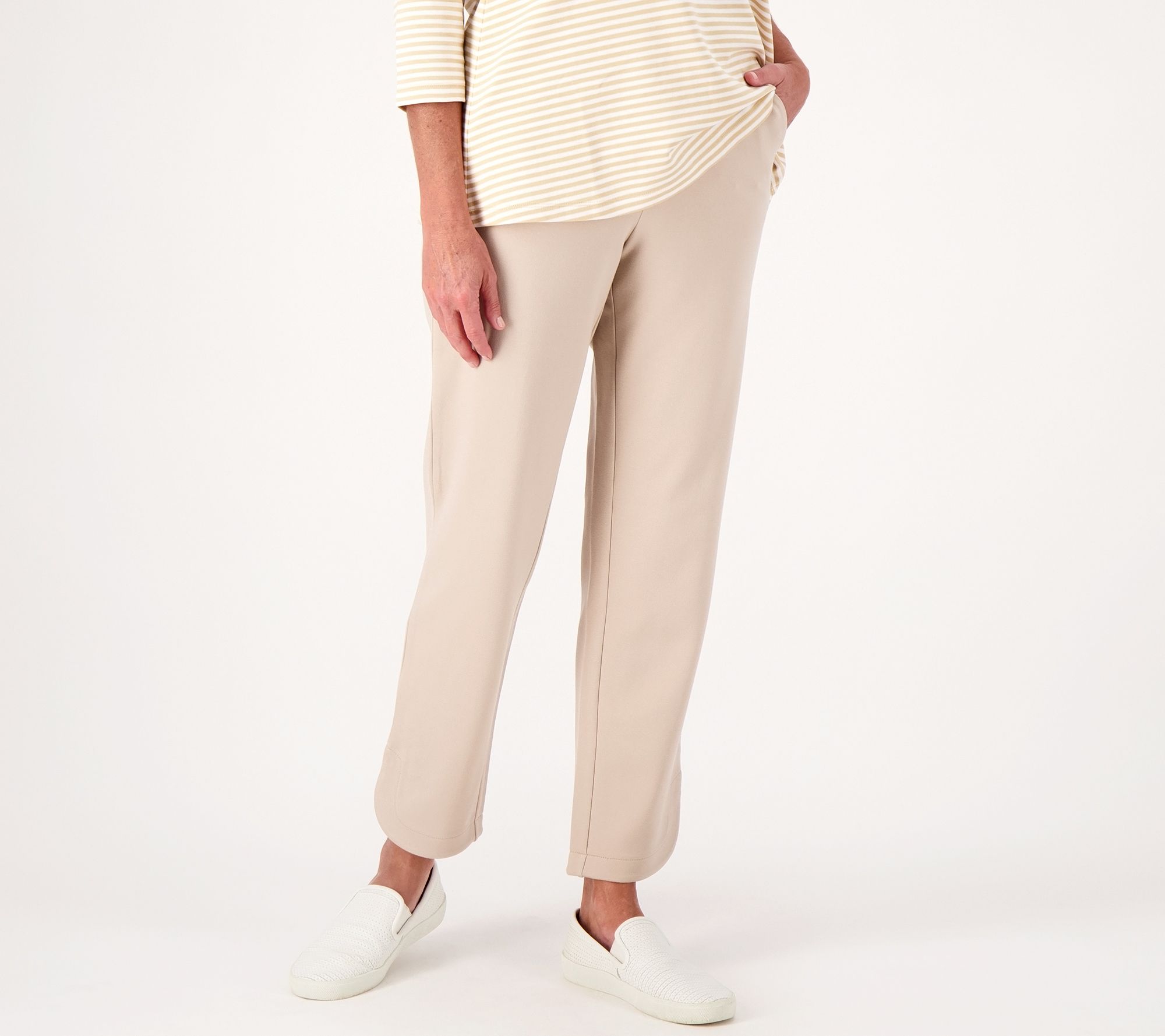 With easy pull-on style and functional scoop pockets, these ankle pants are your new comfy go-to. Pair them with cute bedazzled sneaks and a Henley top and head out the door to run errands in style. (Love that cozy stretch!) From Isaac Mizrahi Live!TM.