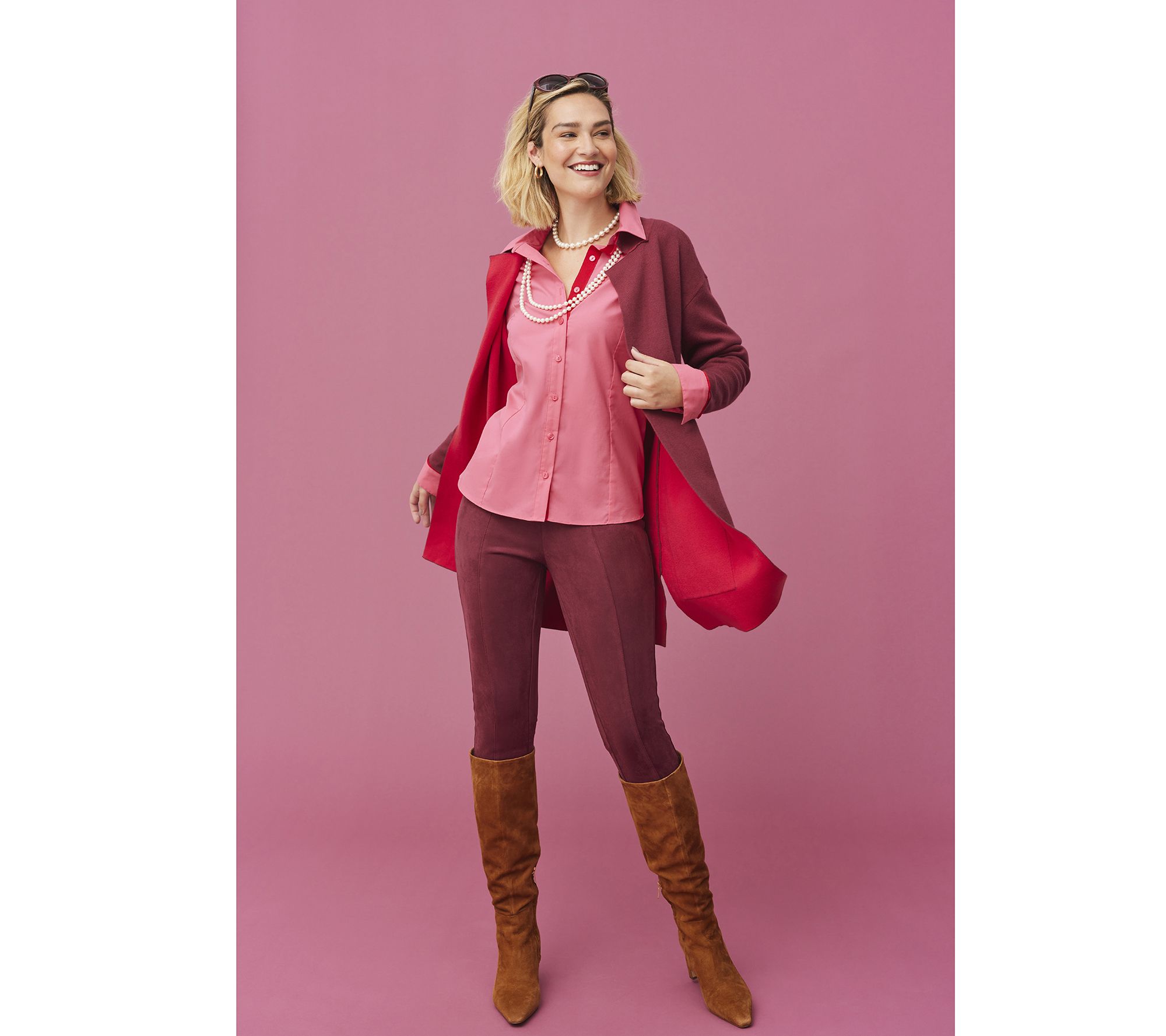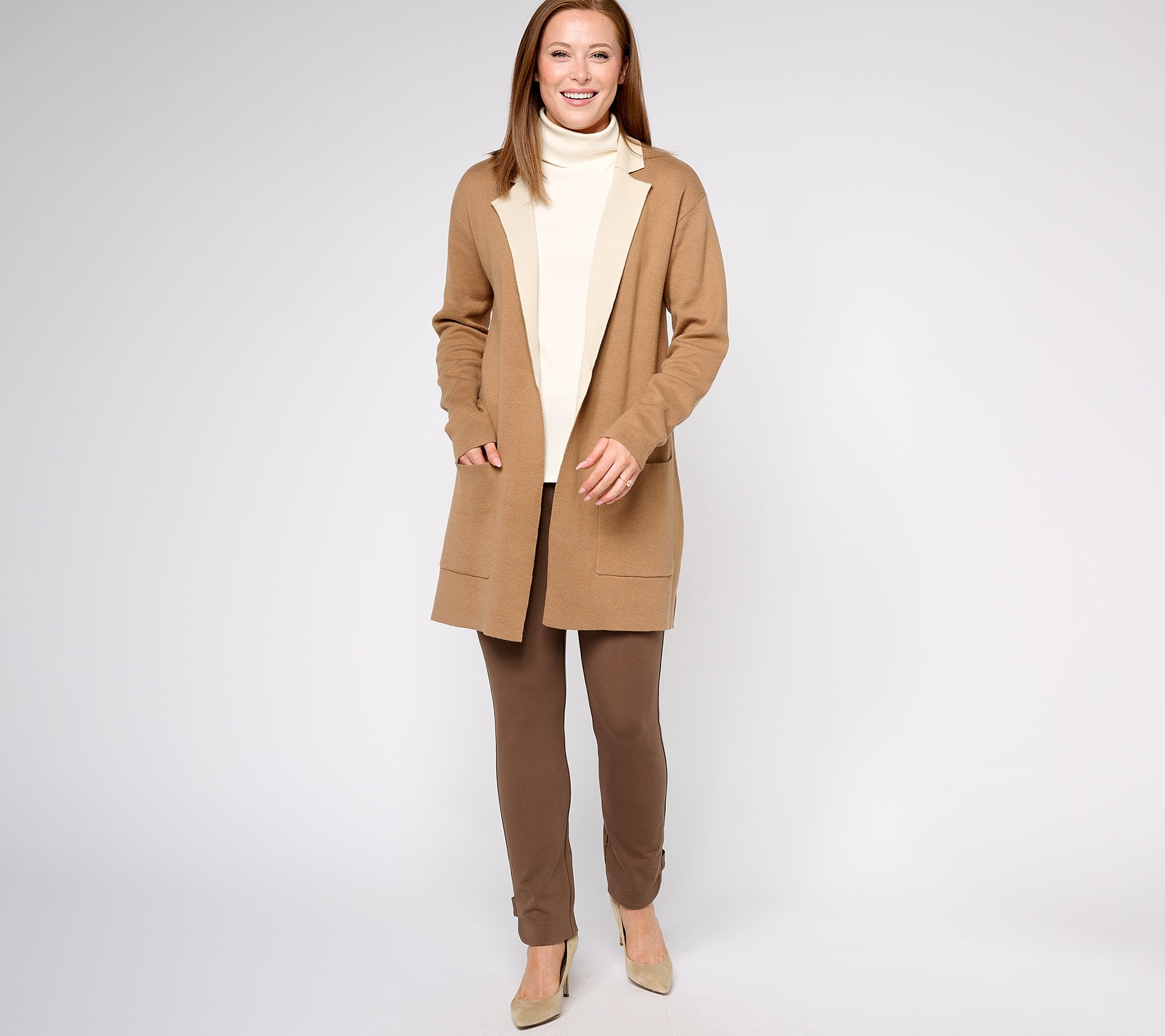 A crisp two-tone design elevates this open-front duster from simple sweater to sophisticated separate. From Isaac Mizrahi Live!TM