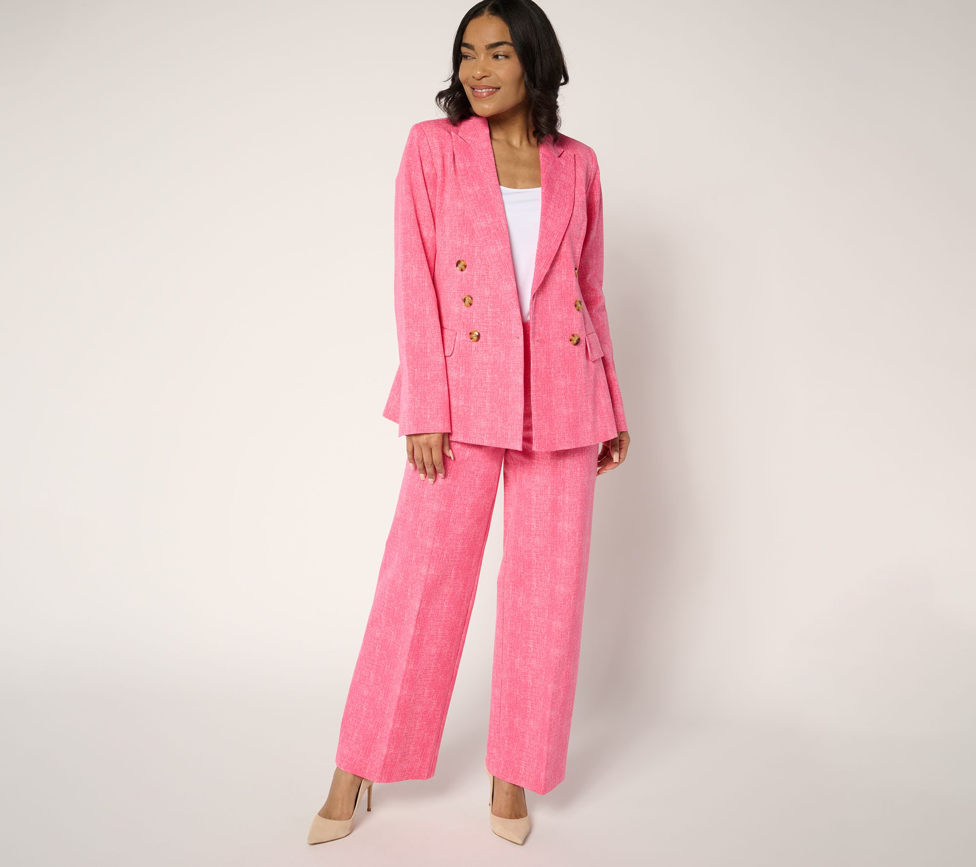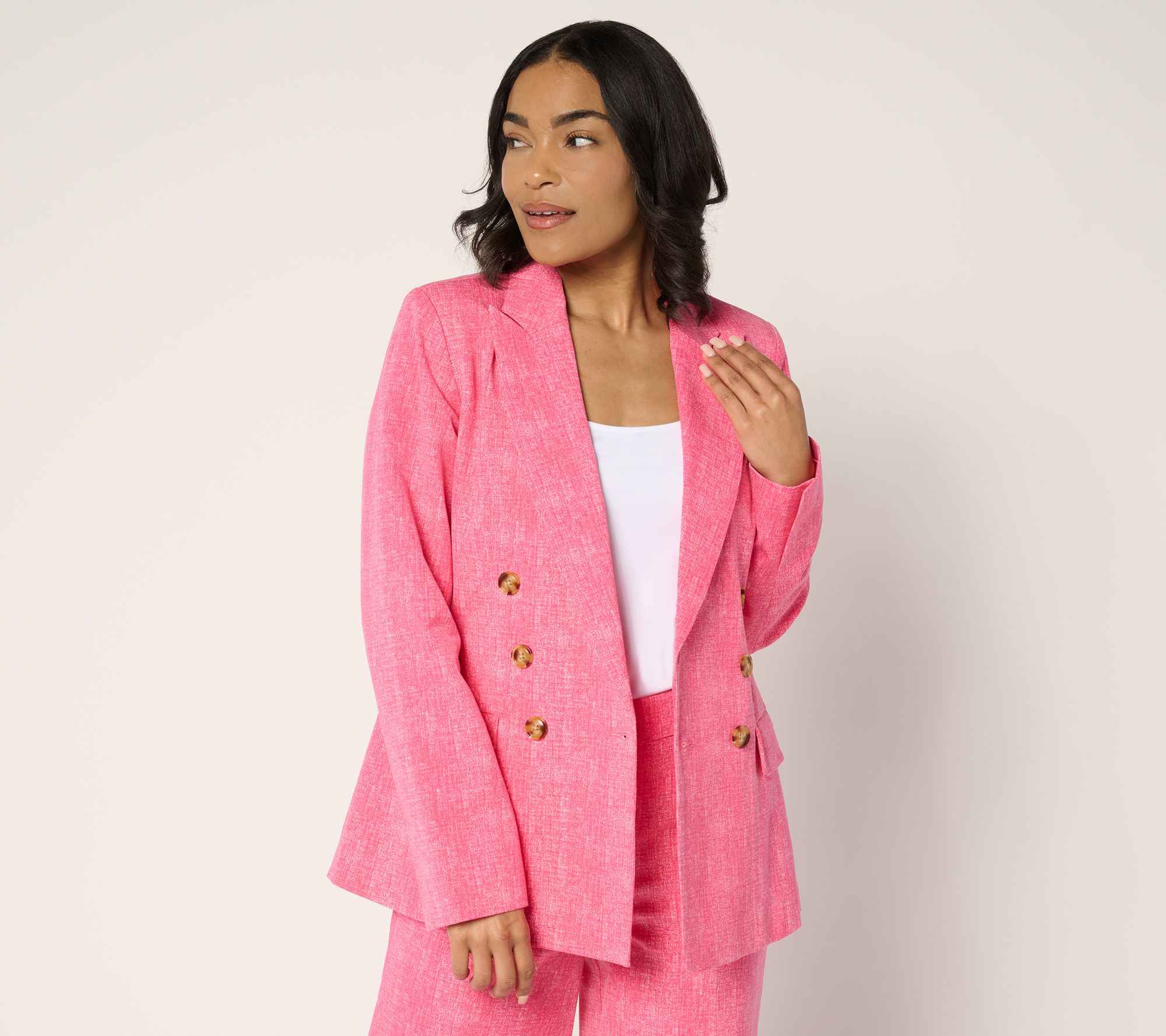 Permission to mix business and pleasure with this Yacht Club blazer in printed 24/7 Stretch. The double-breasted design, complemented by a peak lapel, is a classic-cool look for client meetings, seaside lunch dates, and everything in between. From Isaac Mizrahi Live!TM.