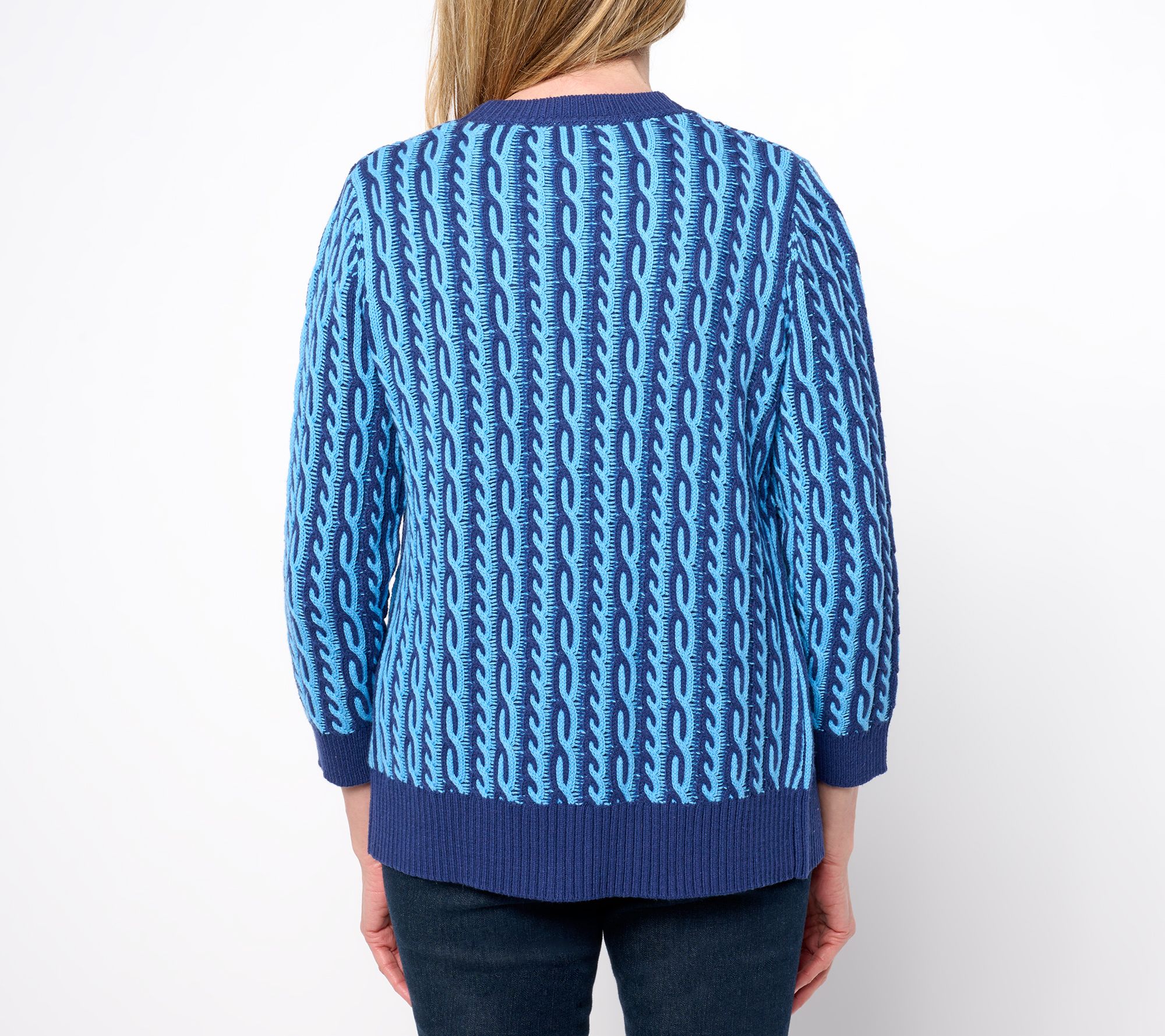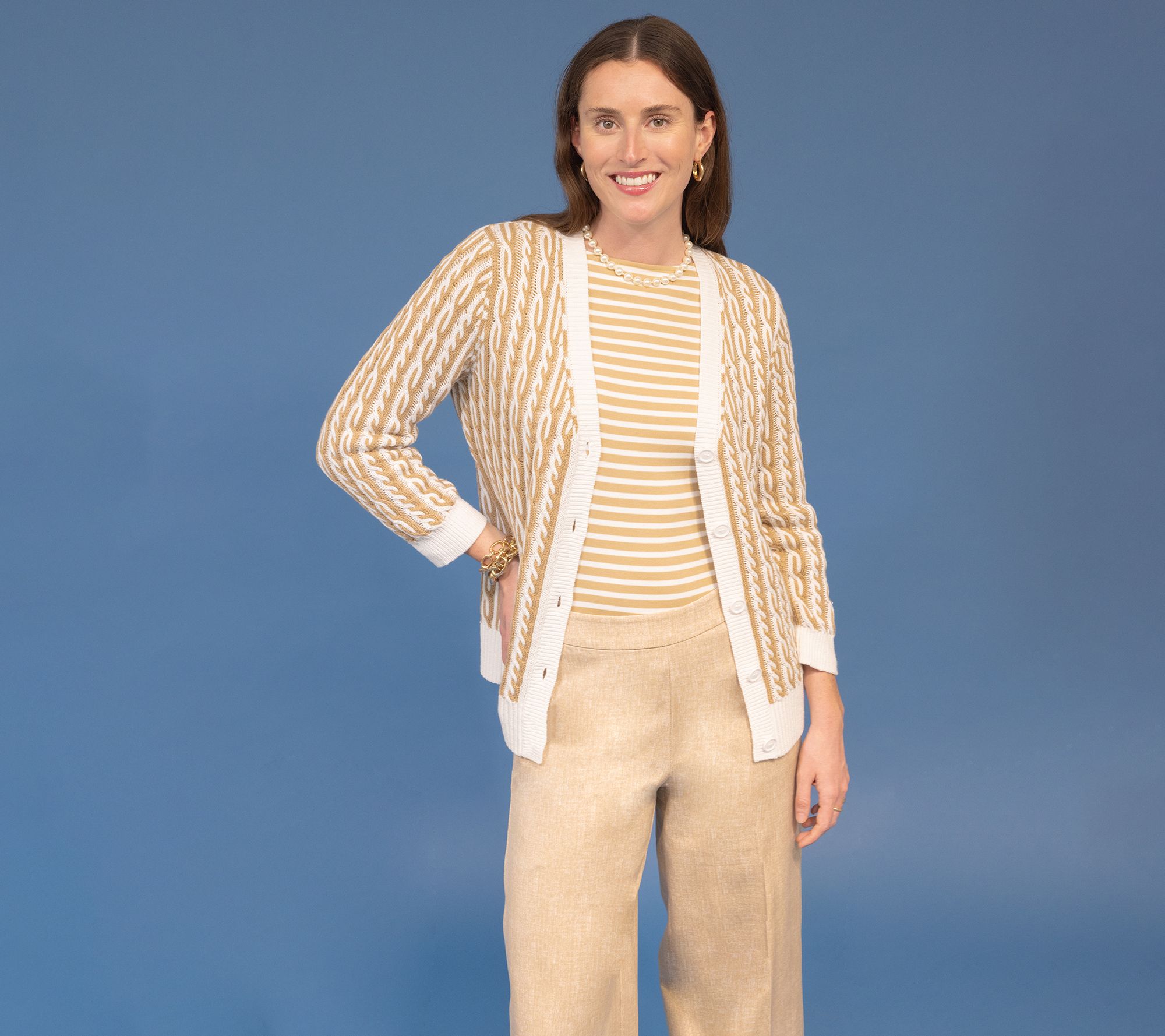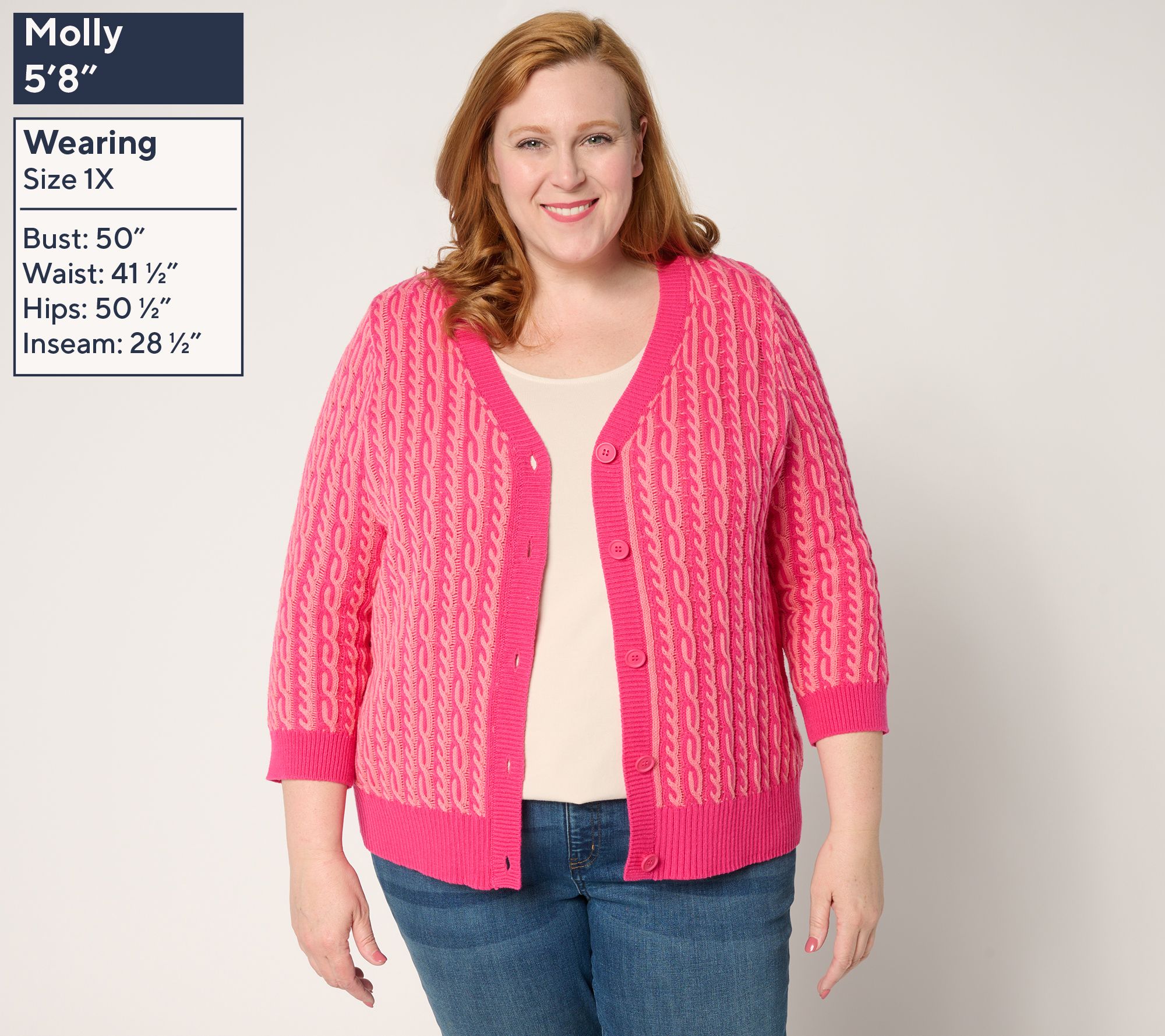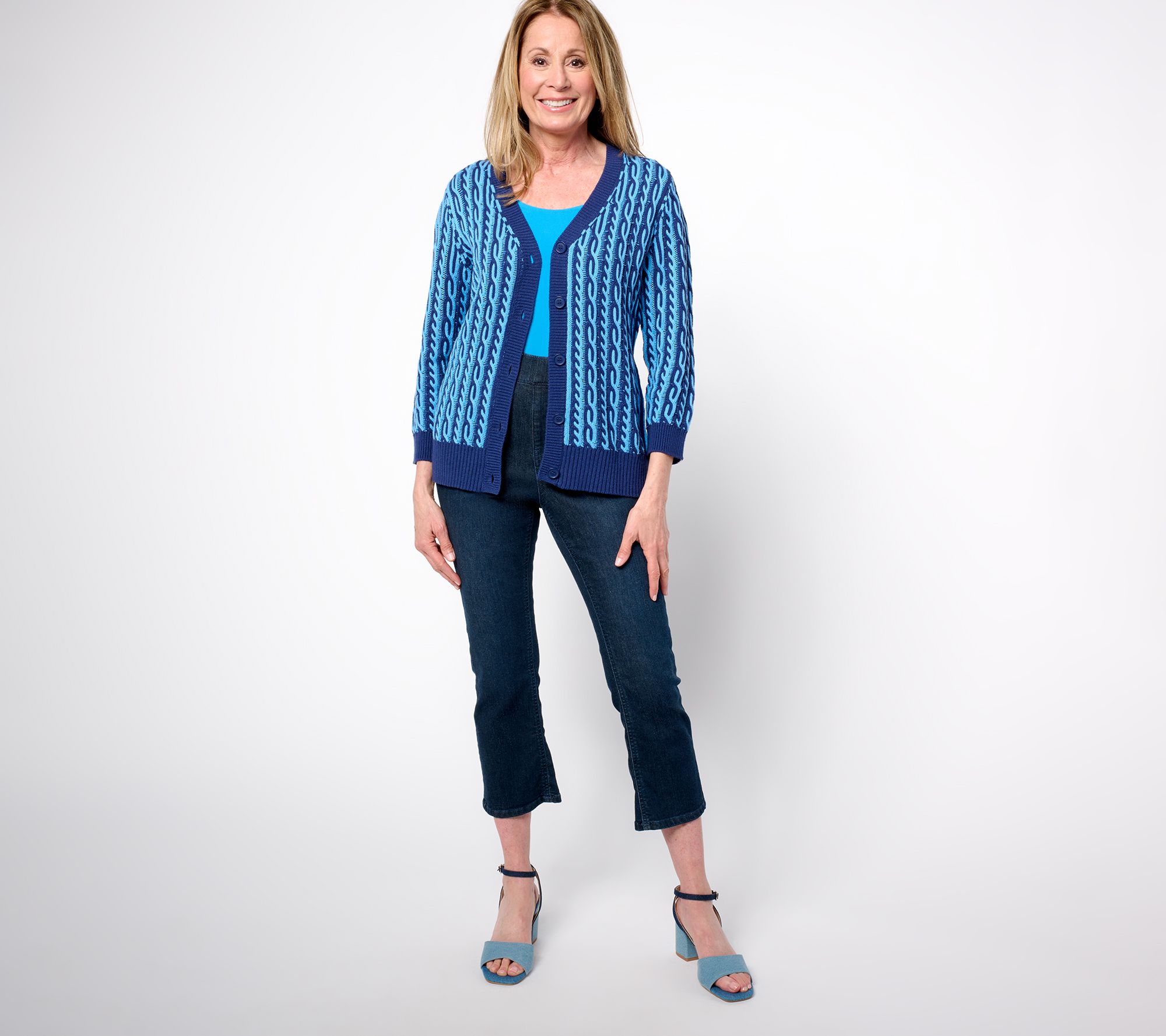 Planning for a breezy day out? This preppy cardigan keeps you cozy and the vibe sophisticated, thanks to rich tonal cabling and a seaside-smart weight. From Isaac Mizrahi Live!TM.