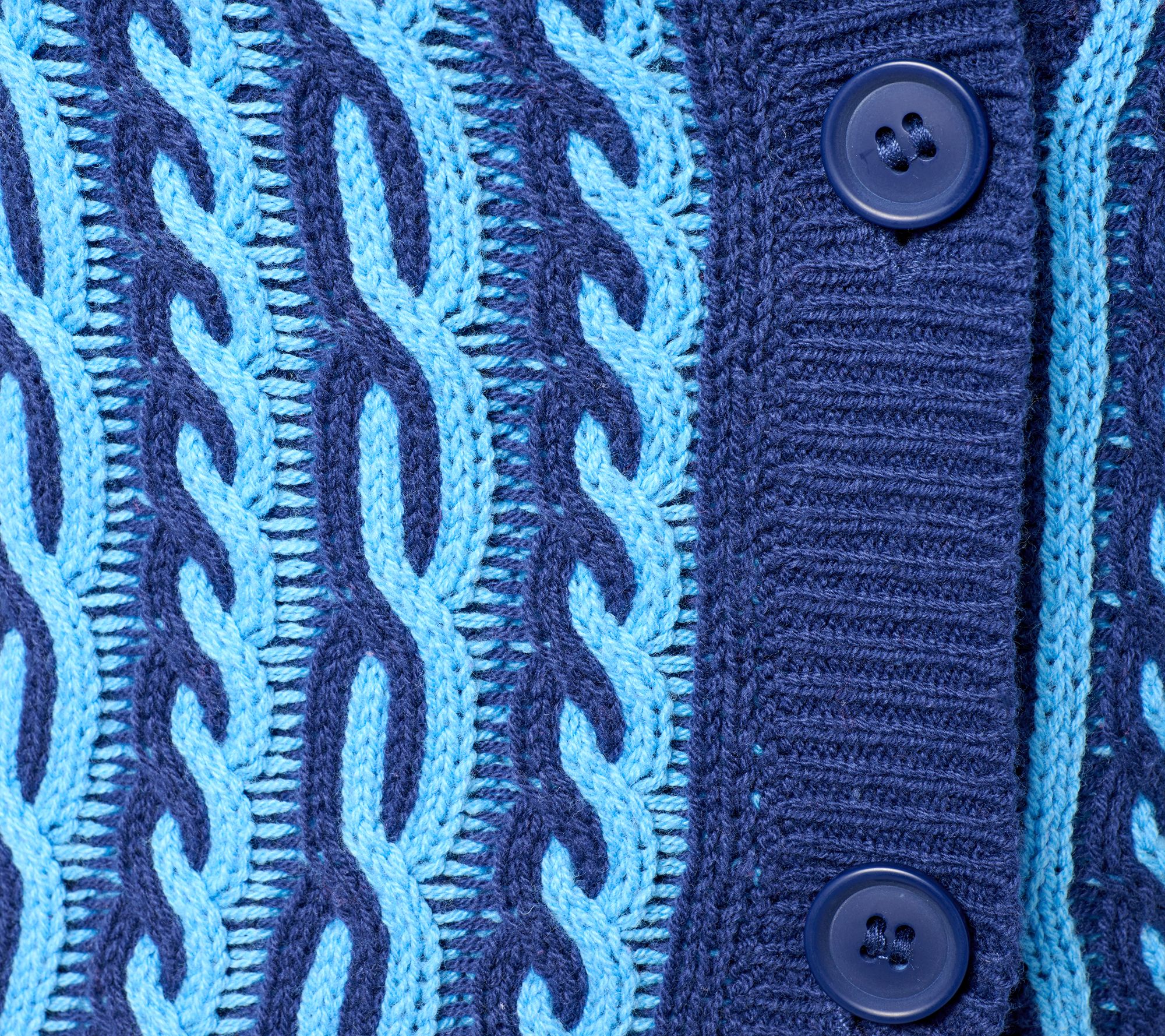 • Features: tonal cabling, rib at neck, sleeves, and bottom hem