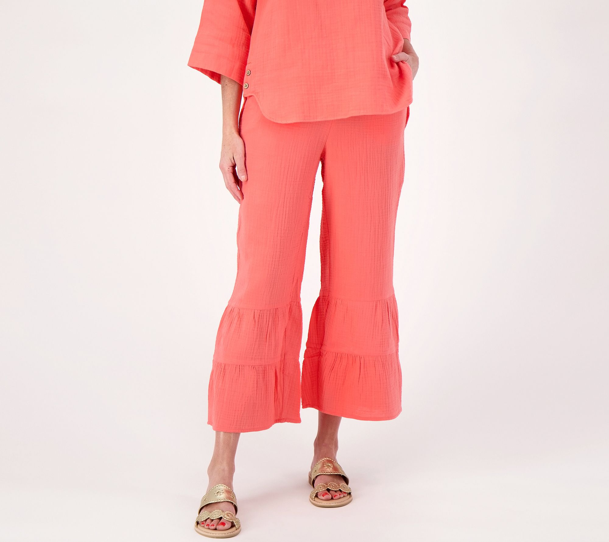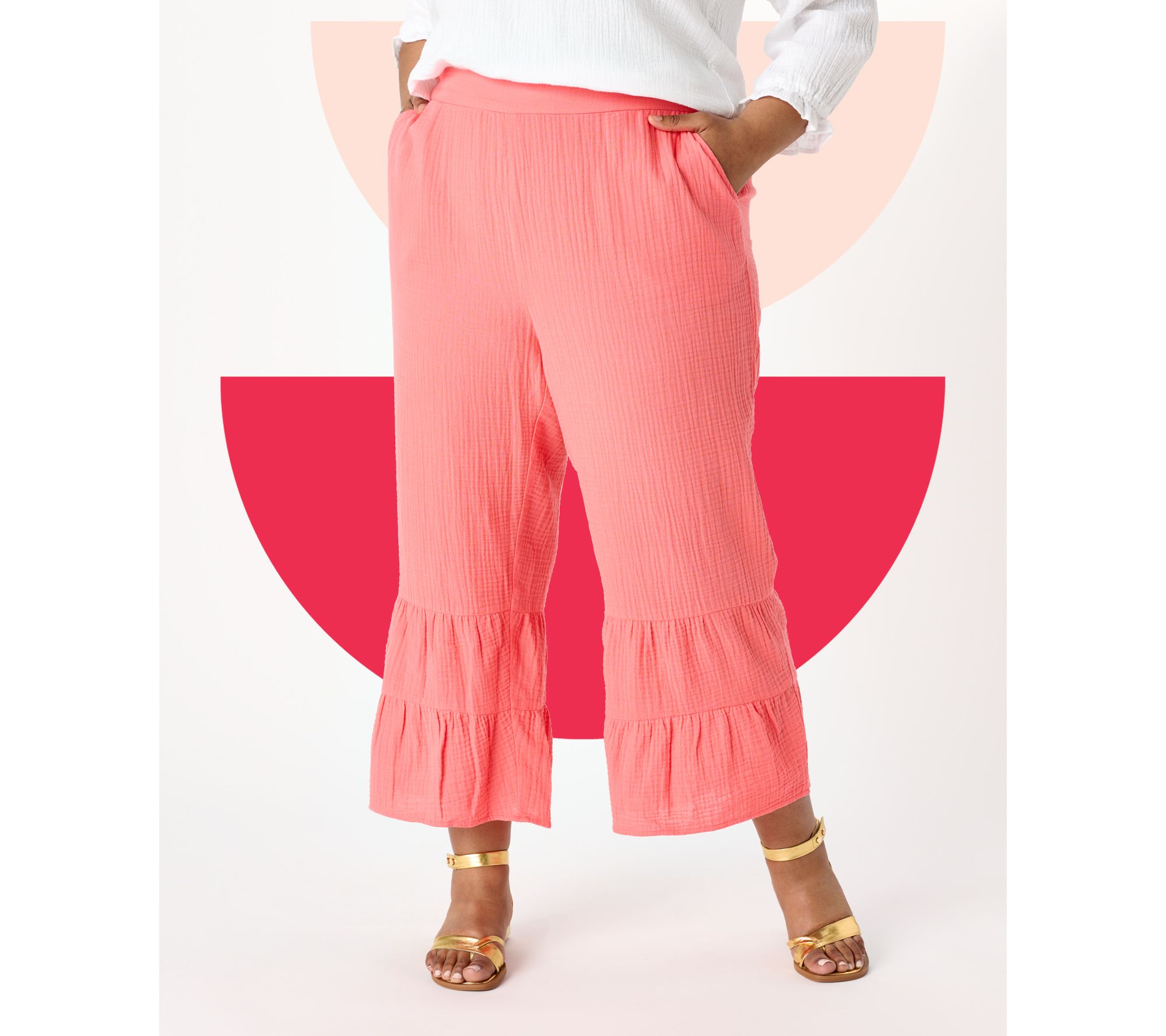 Hello, summer! Greet gorgeously sunny days in Isaac's go-everywhere gauze pants that give off all the breezy, flirty feels with a fun shirred and tiered hem. Have you ever worn anything so chic and playful? (We're all in!). From Isaac Mizrahi Live!TM.