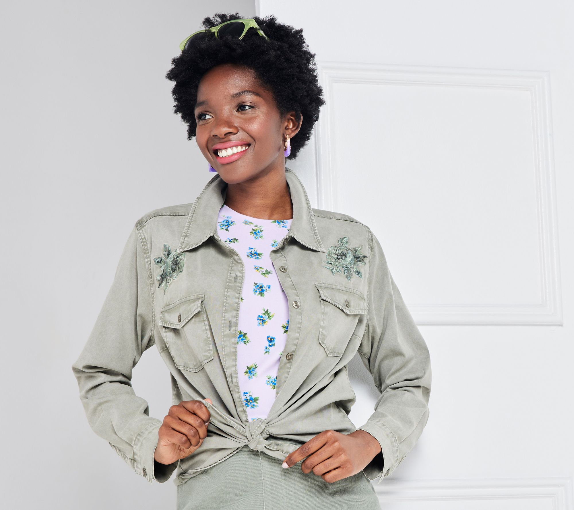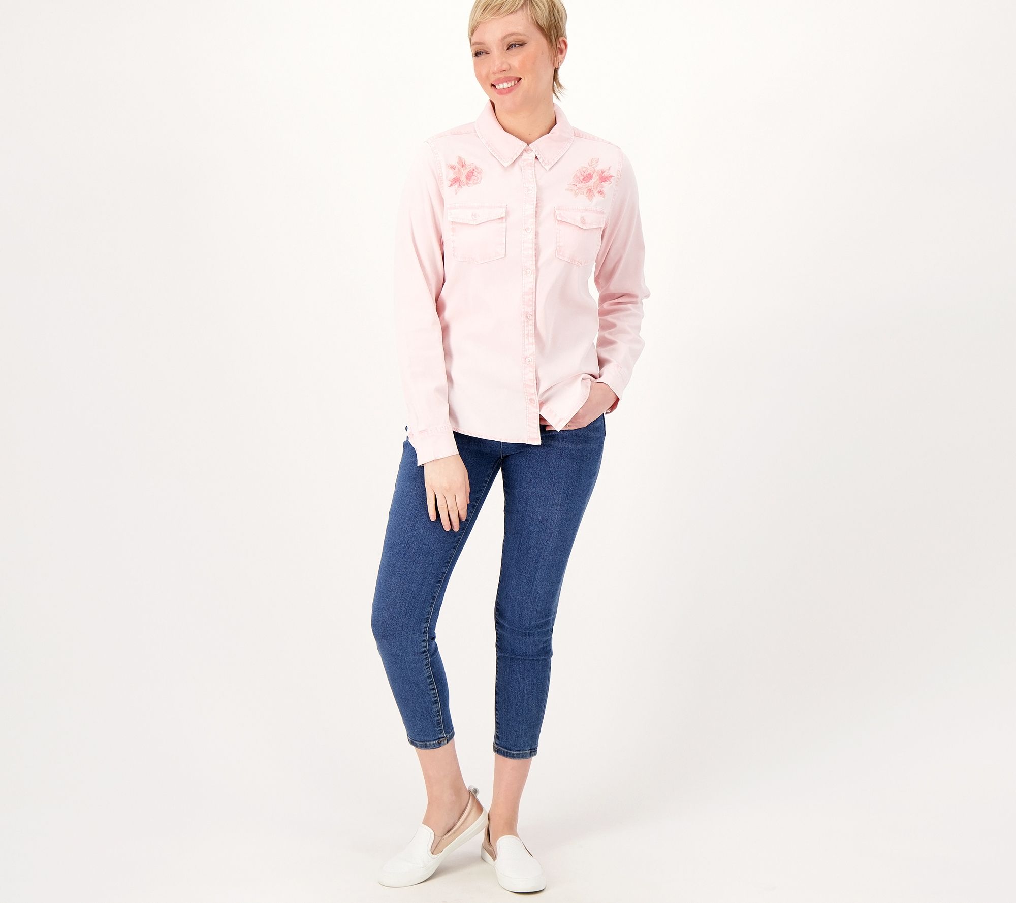 It doesn't get much more classic than this drapey denim button-up shirt. From Isaac Mizrahi Live!TM.