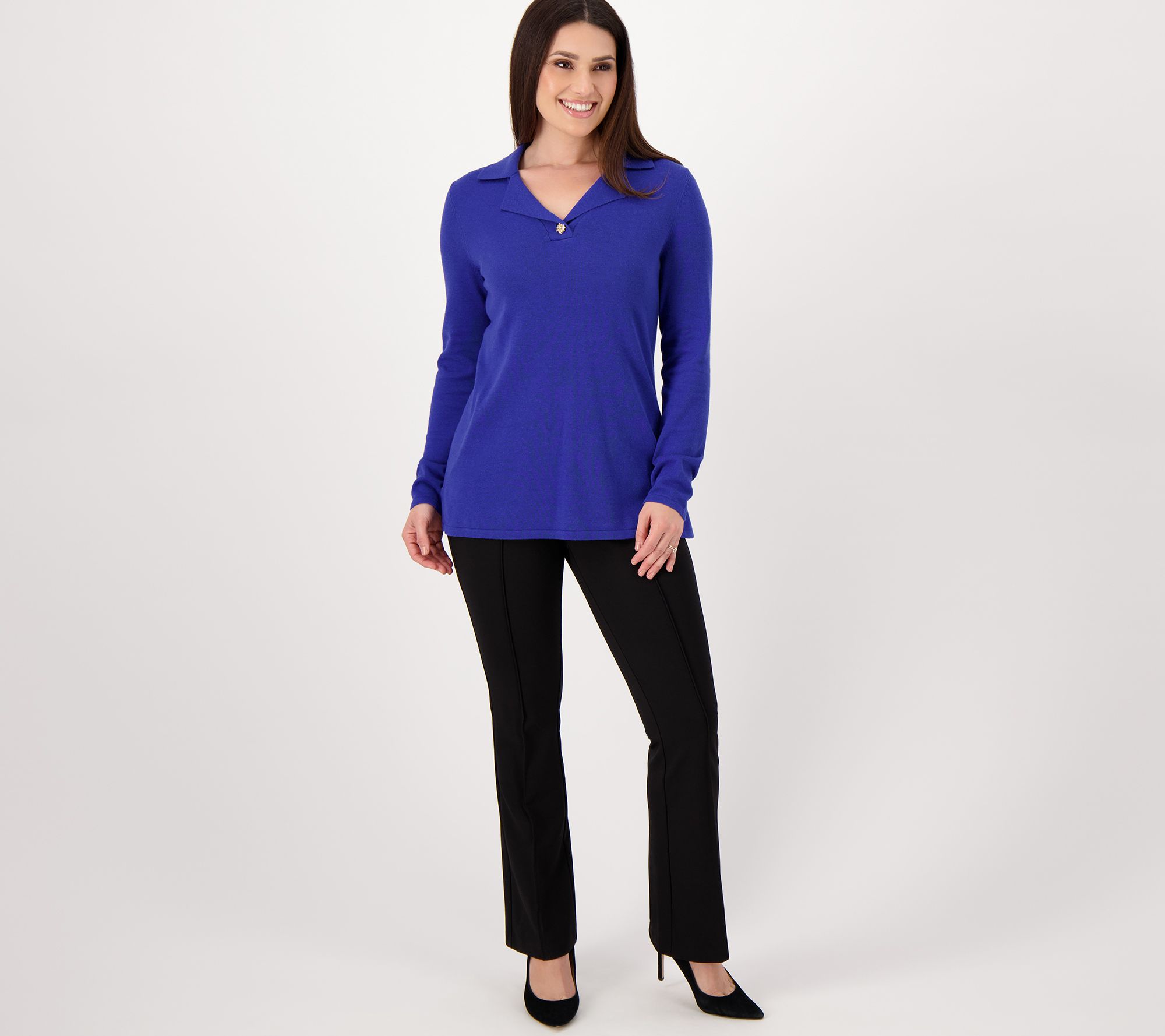 "As Is" Isaac Mizrahi Live Collared Sweater Pullover