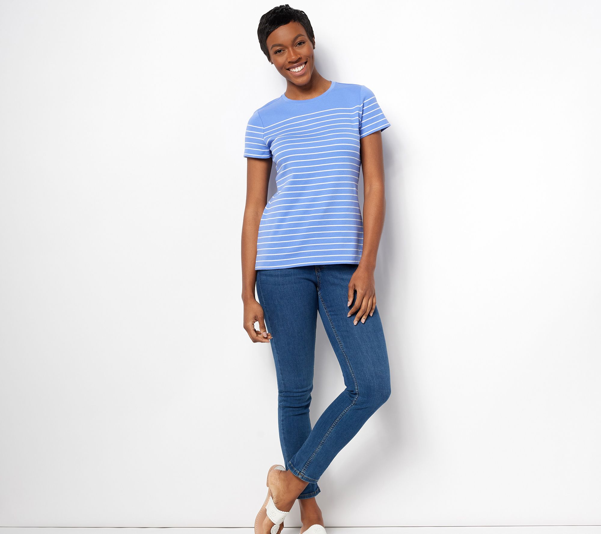 Show your stripes! This cotton crewneck keeps things classic and comfy for jam-packed days out and about. From Isaac Mizrahi Live!TM.