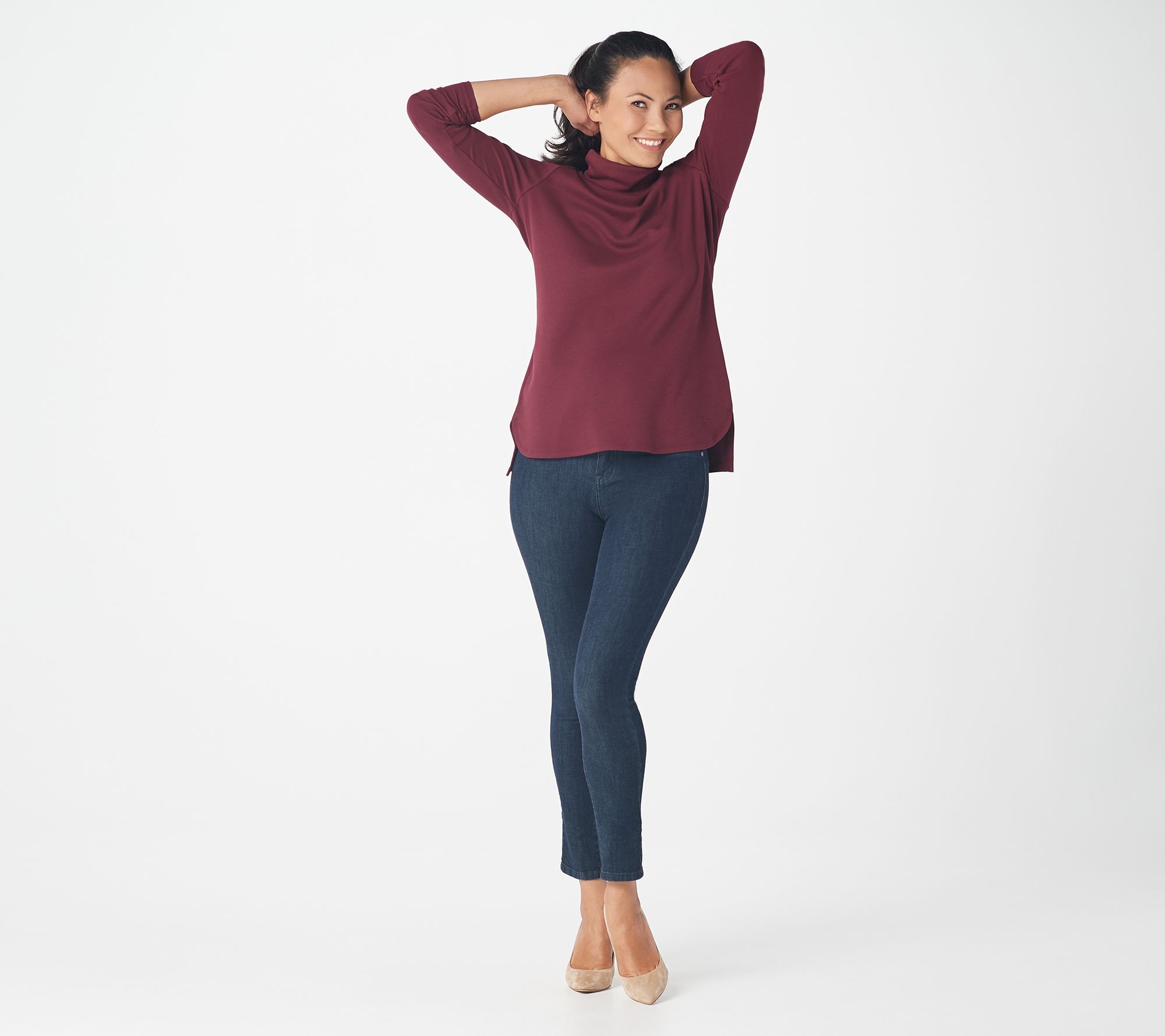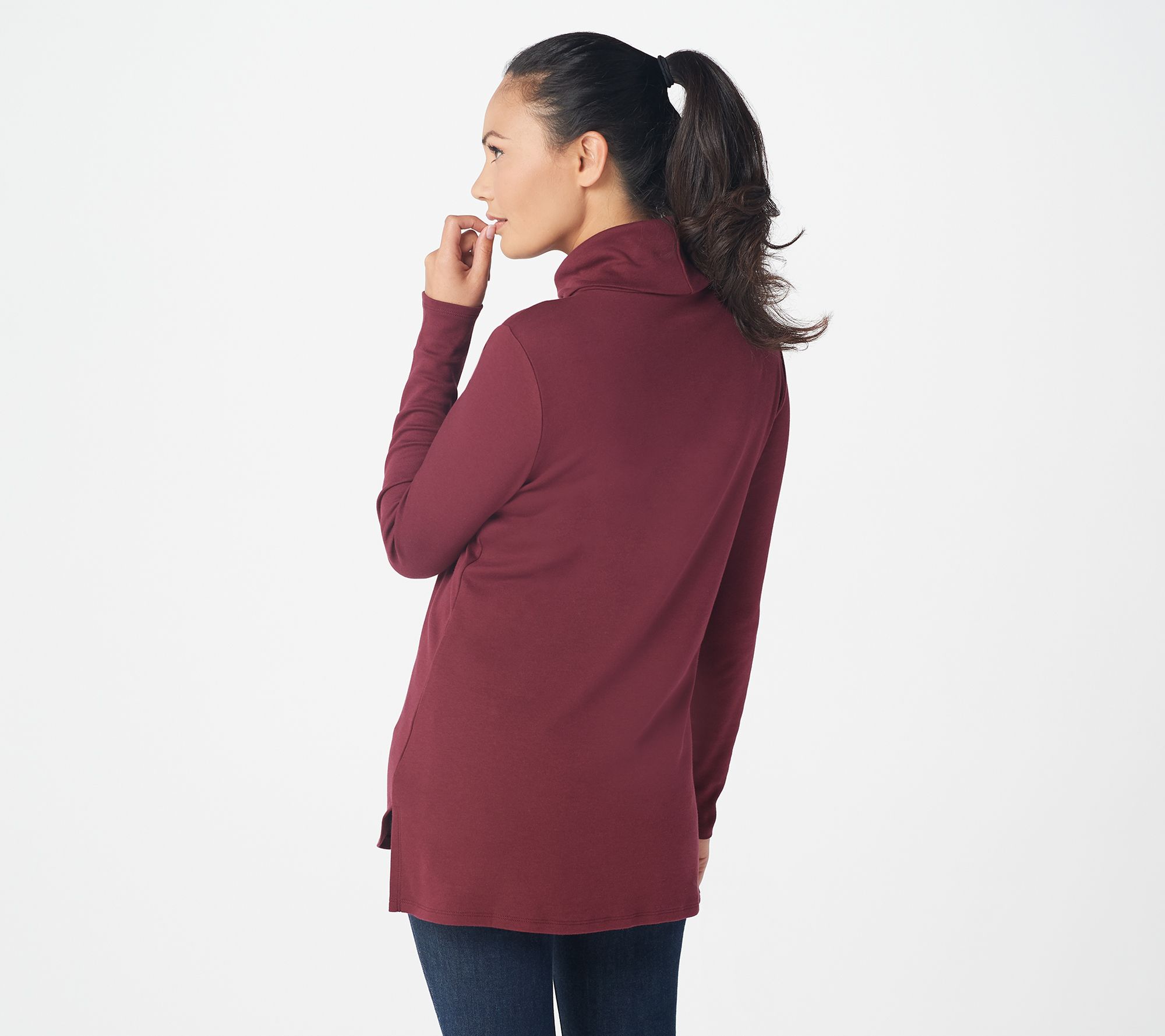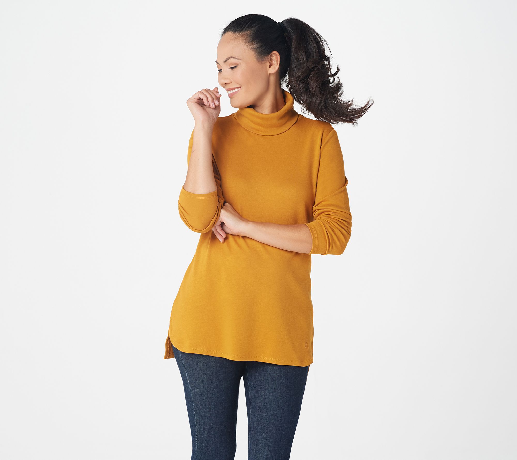 "As Is" Isaac Mizrahi Live Essentials Long Sleeve Hi-Low Hem Turtleneck