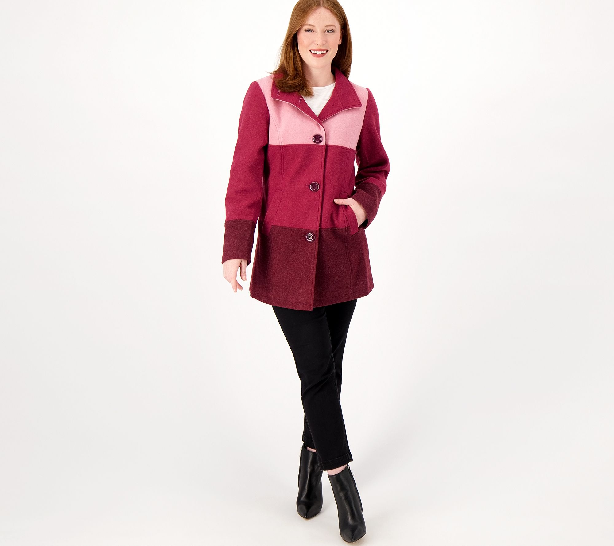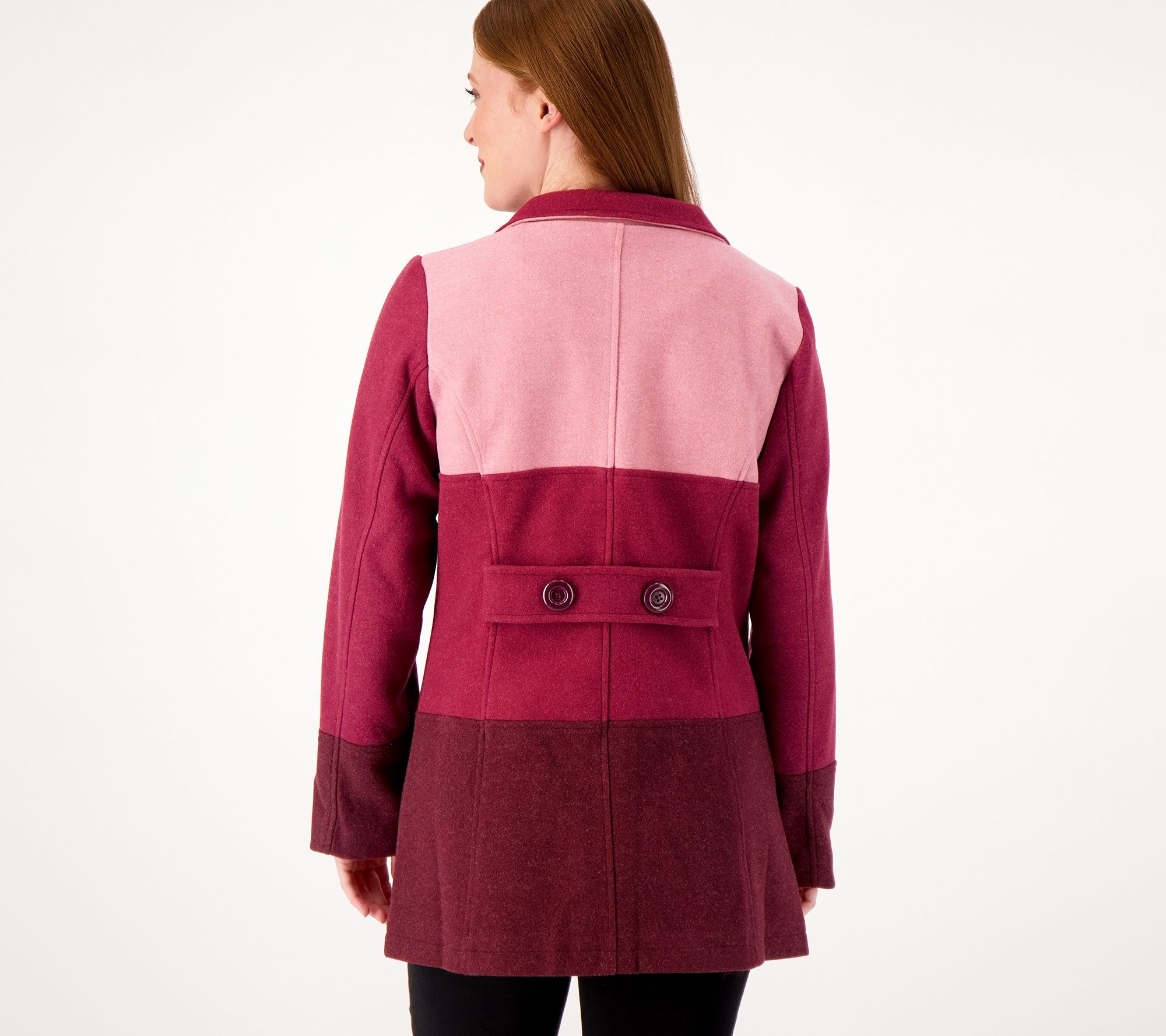 "As Is" Isaac Mizrahi Live Faux Wool Color Block Coat