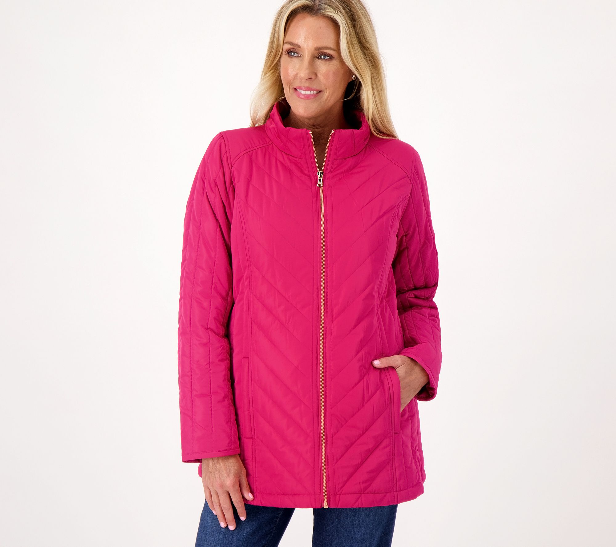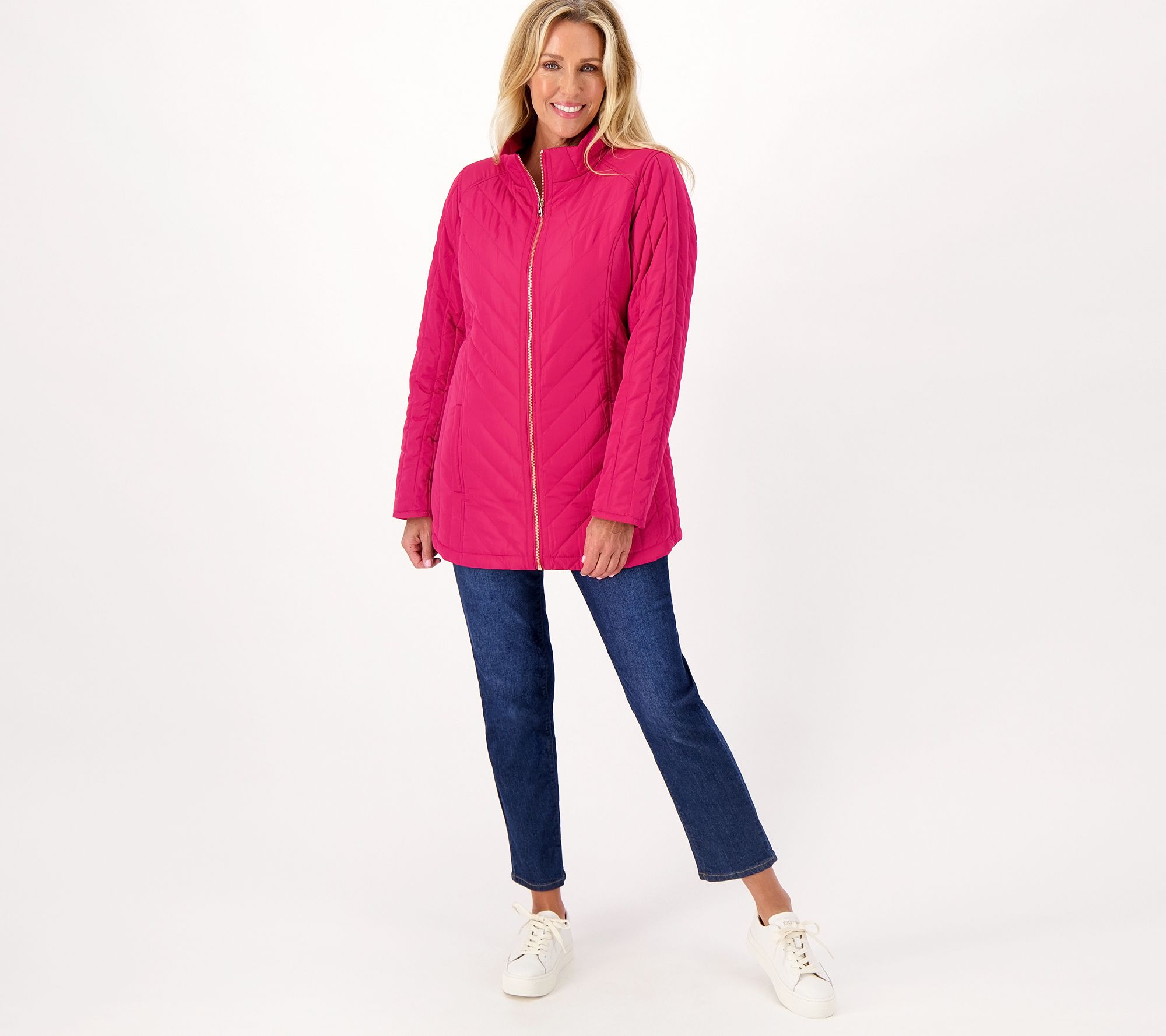 Making plans on unpredictable weather days just got easier. You're prepared for all forecasts 'cause this quilted jacket has something up its (printed) sleeve...you'll see what we mean. From Isaac Mizrahi Live!TM.