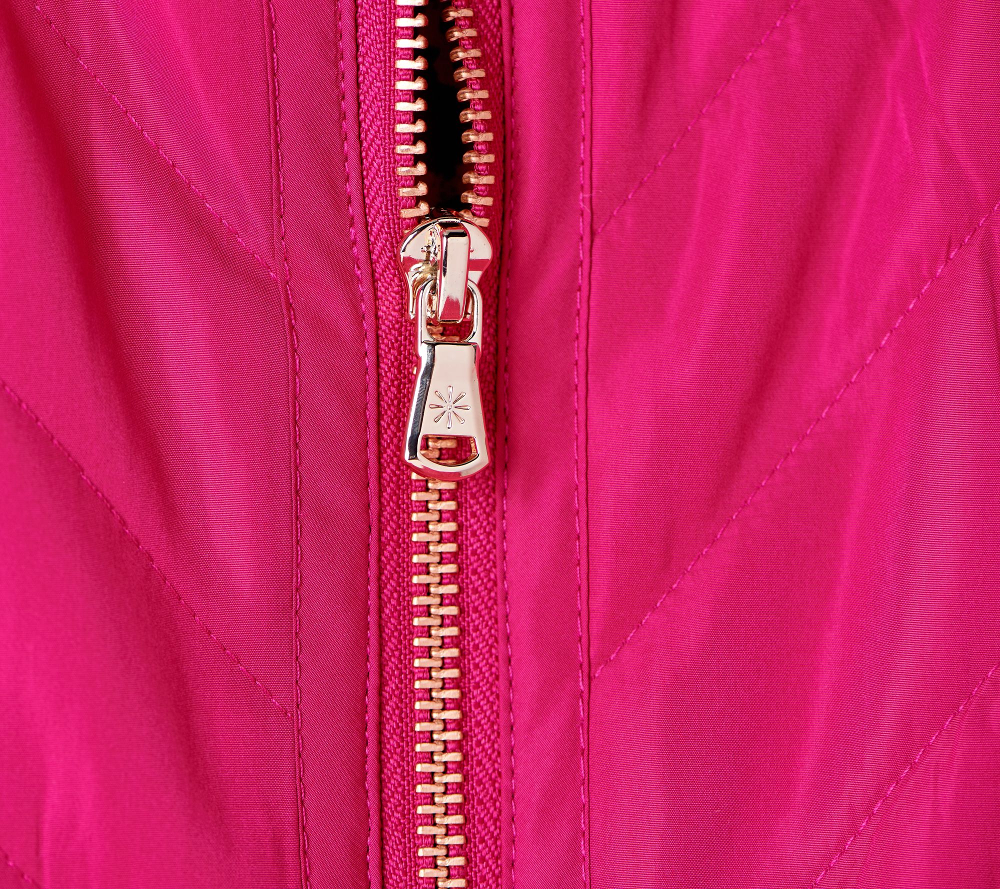 • Features: water-resistant, quilted style, printed lining, self collar, long sleeves, pockets, princess seams