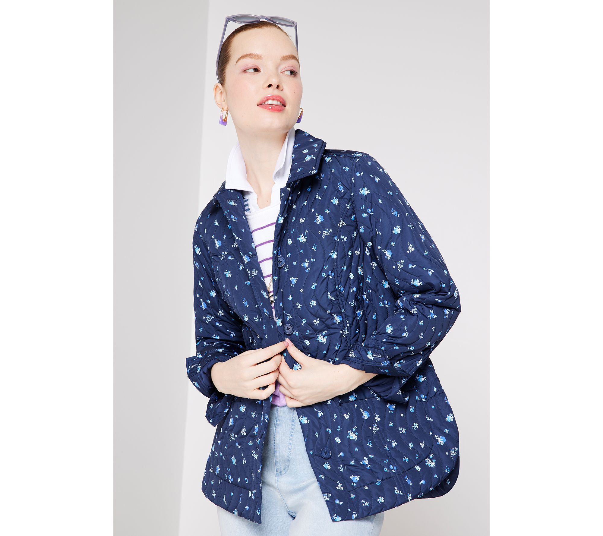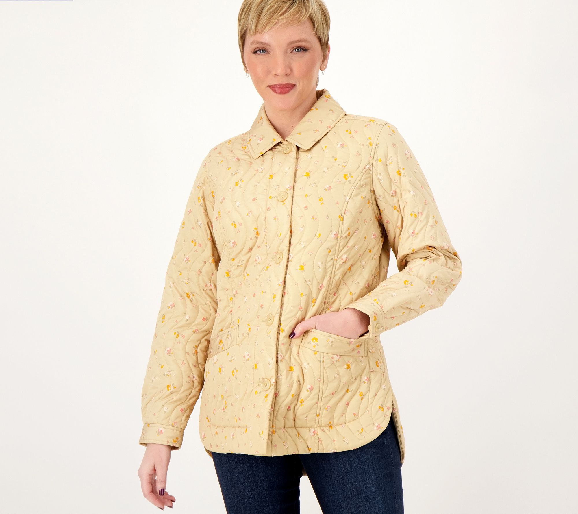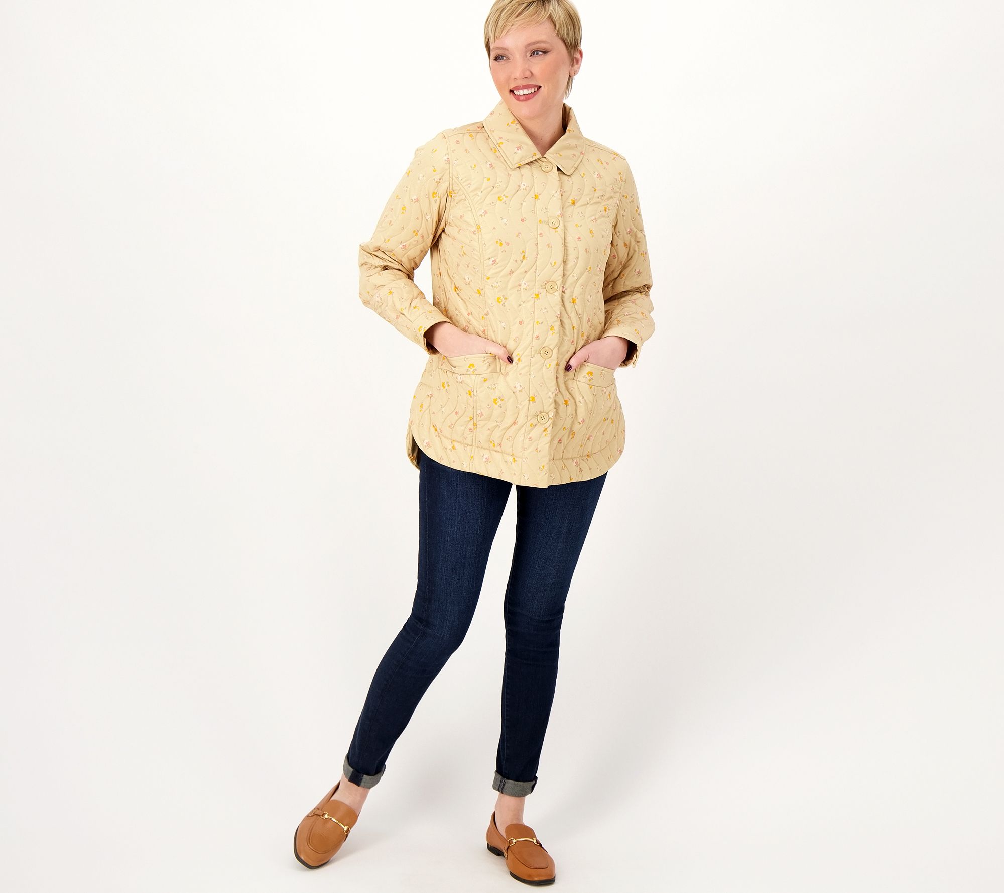 This quilted jacket is perfect for walks on days that are chilly, but not frigidly cold. Match it up with a pair of jeans or leggings and you've got yourself a chic look that also keeps you comfy. From Isaac Mizrahi Live!TM.