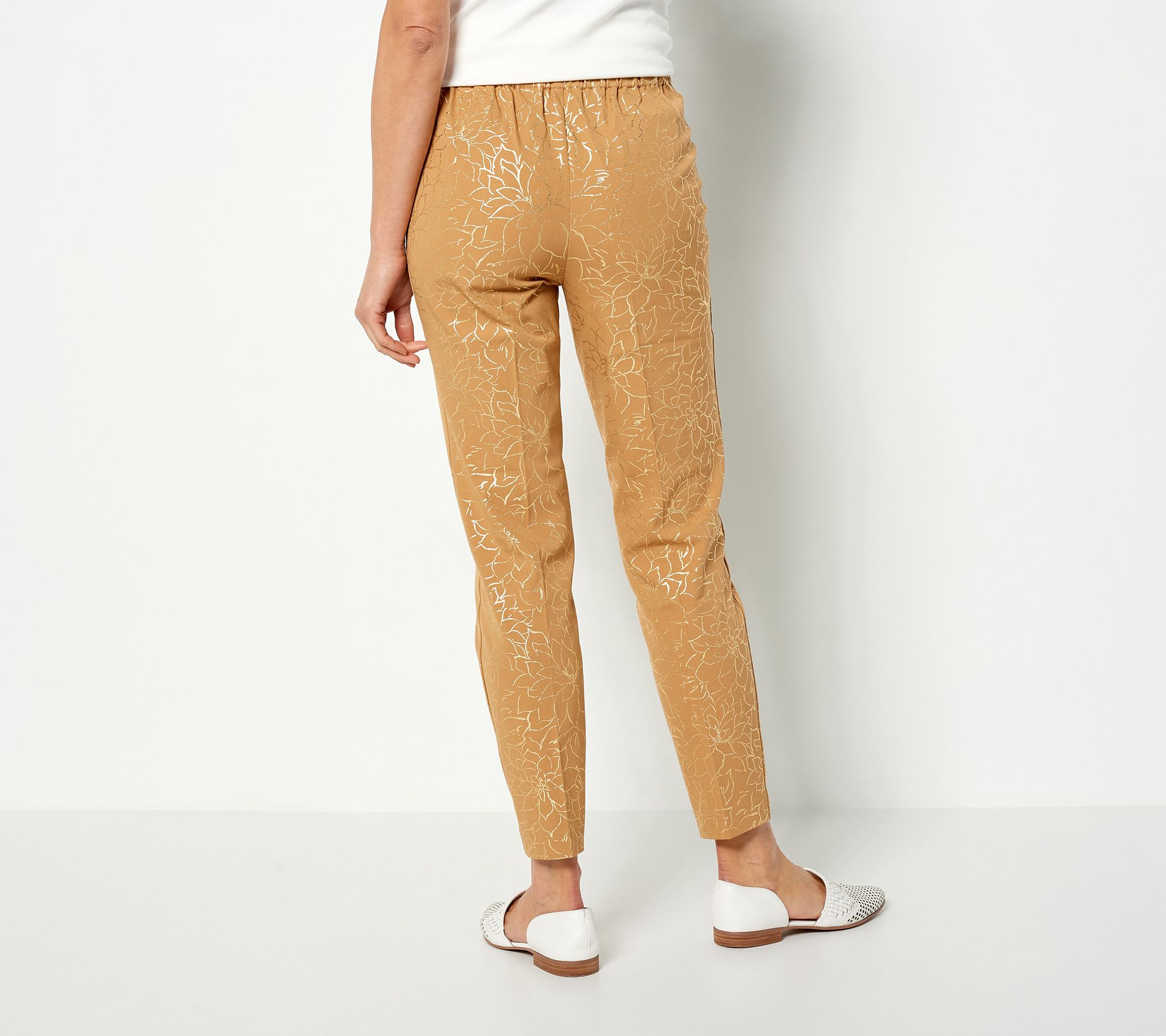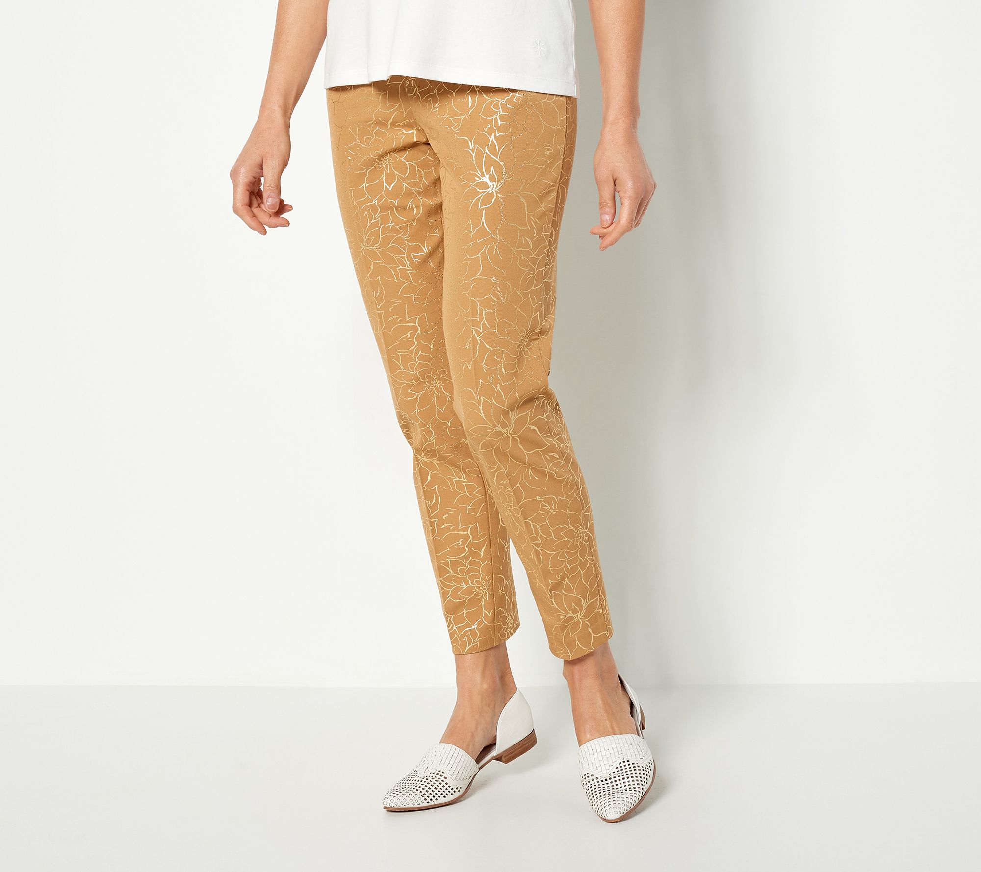 "As Is" Isaac Mizrahi Live Regular 24/7 Stretch Ankle Foil Pants