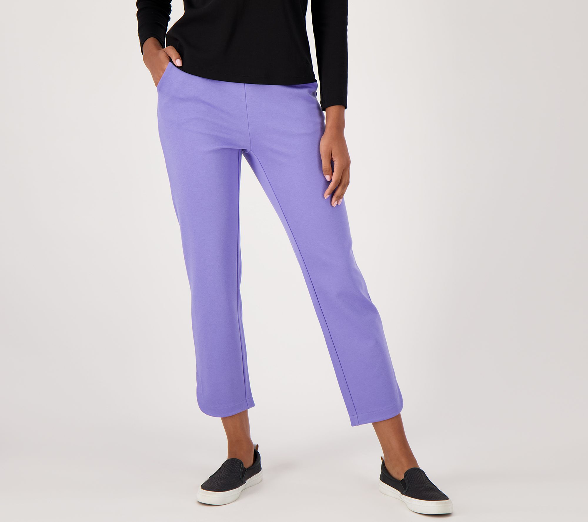 With easy pull-on style and functional scoop pockets, these ankle pants are your new comfy go-to. Pair them with cute bedazzled sneaks and a Henley top and head out the door to run errands in style. (Love that cozy stretch!) From Isaac Mizrahi Live!TM.