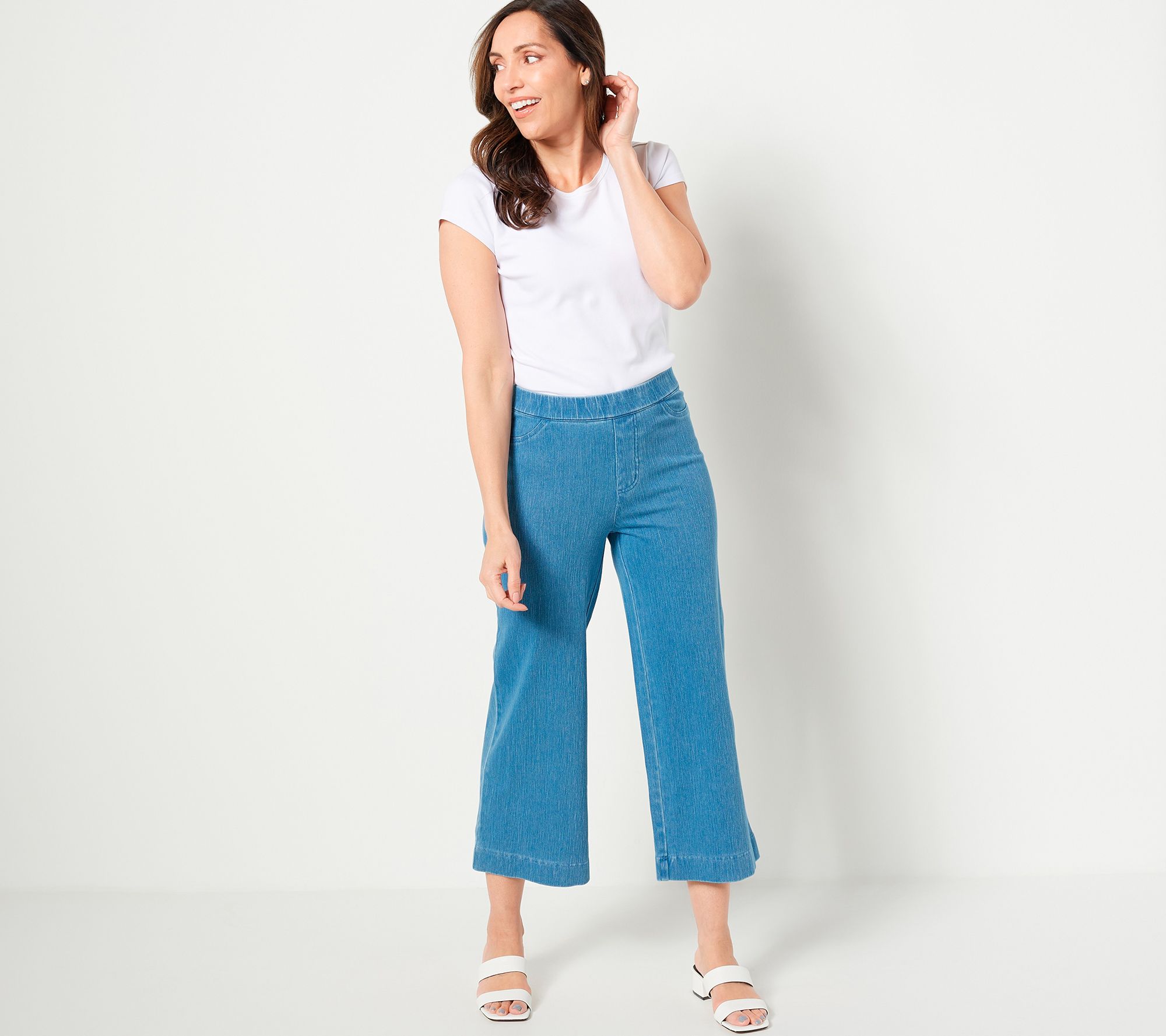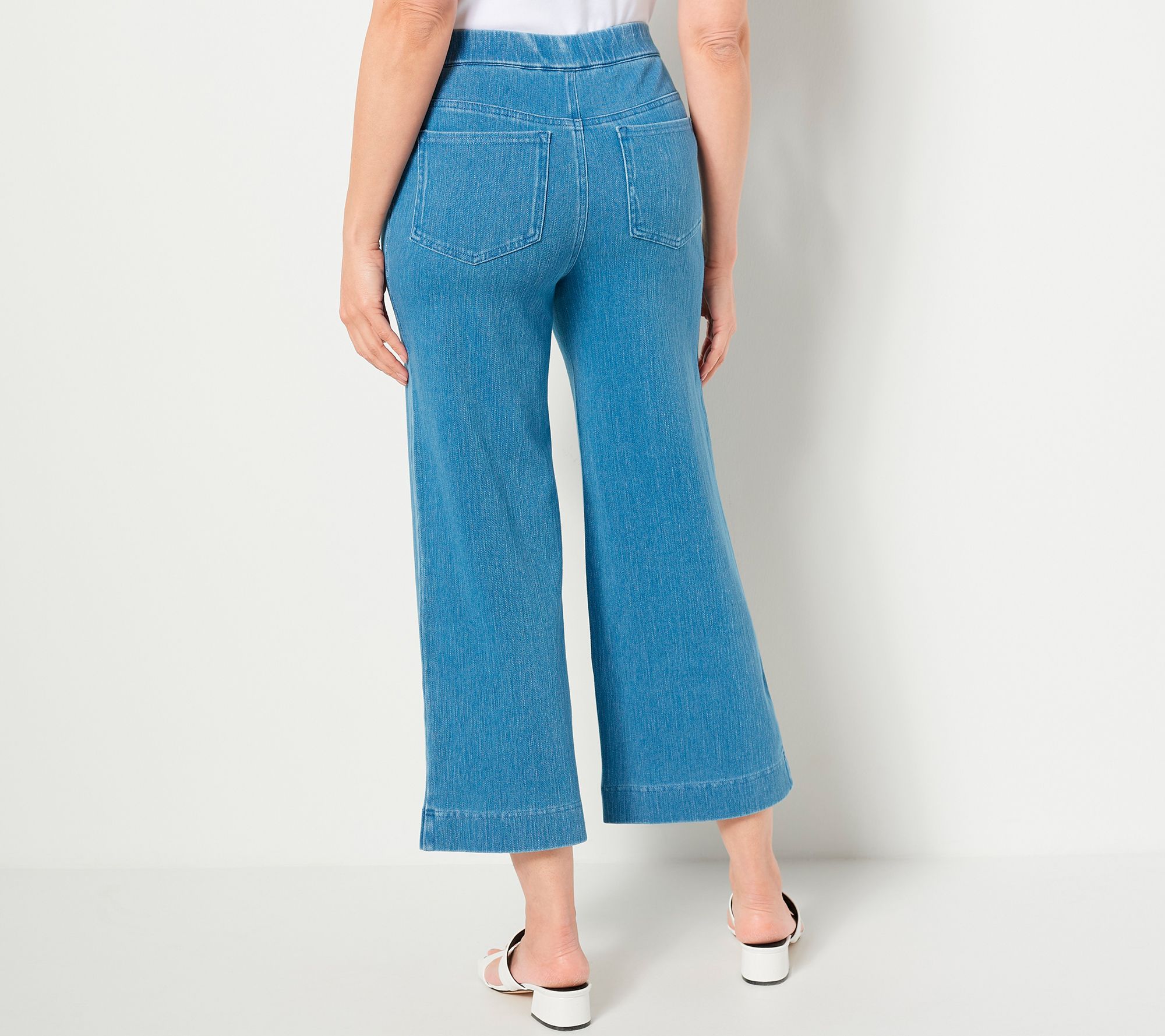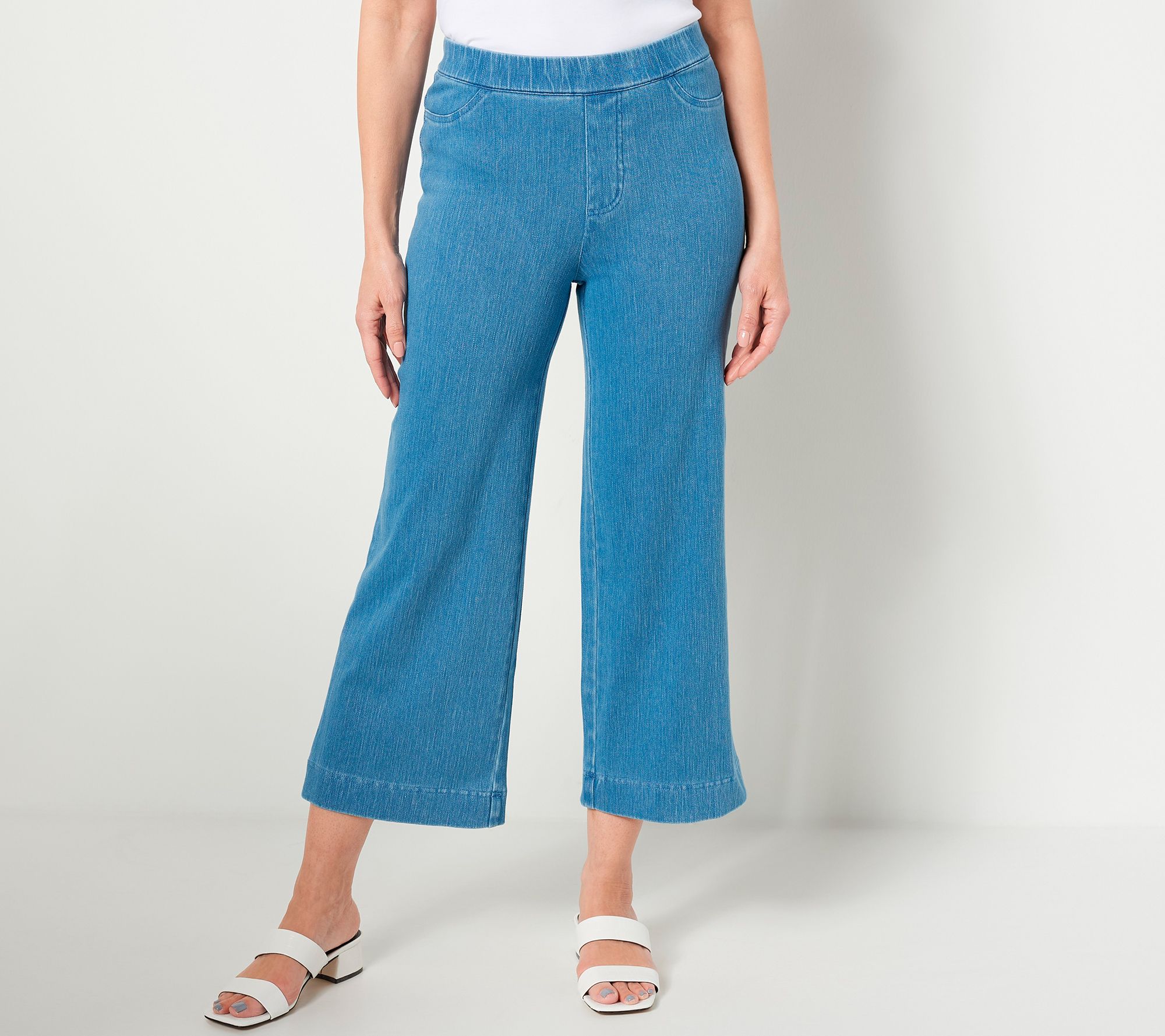 "As Is" Isaac Mizrahi Live Regular Knit Denim Pull On Wide Leg Crop