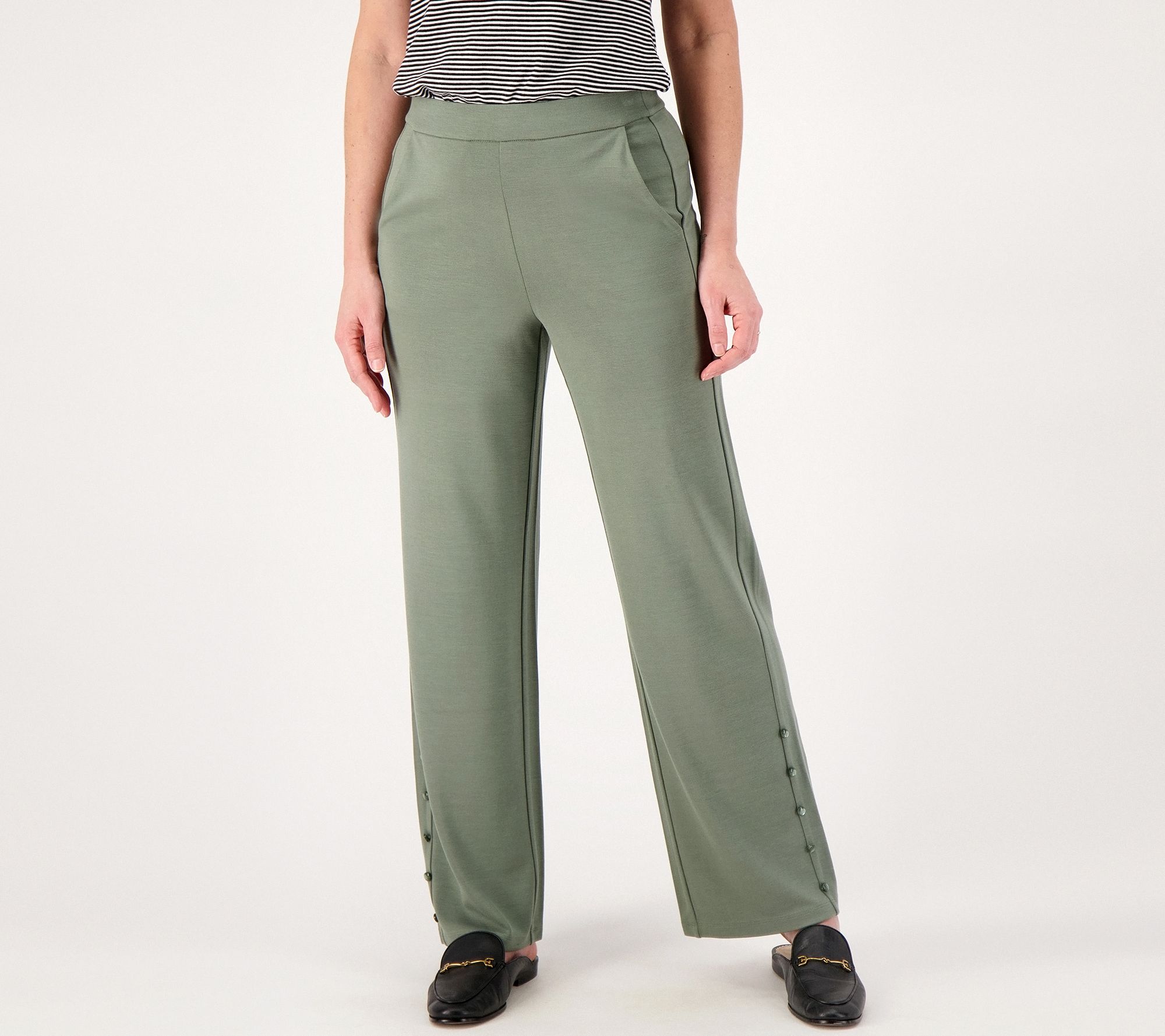 "As Is" Isaac Mizrahi Live Regular Ponte Pants with Pearl Buttons