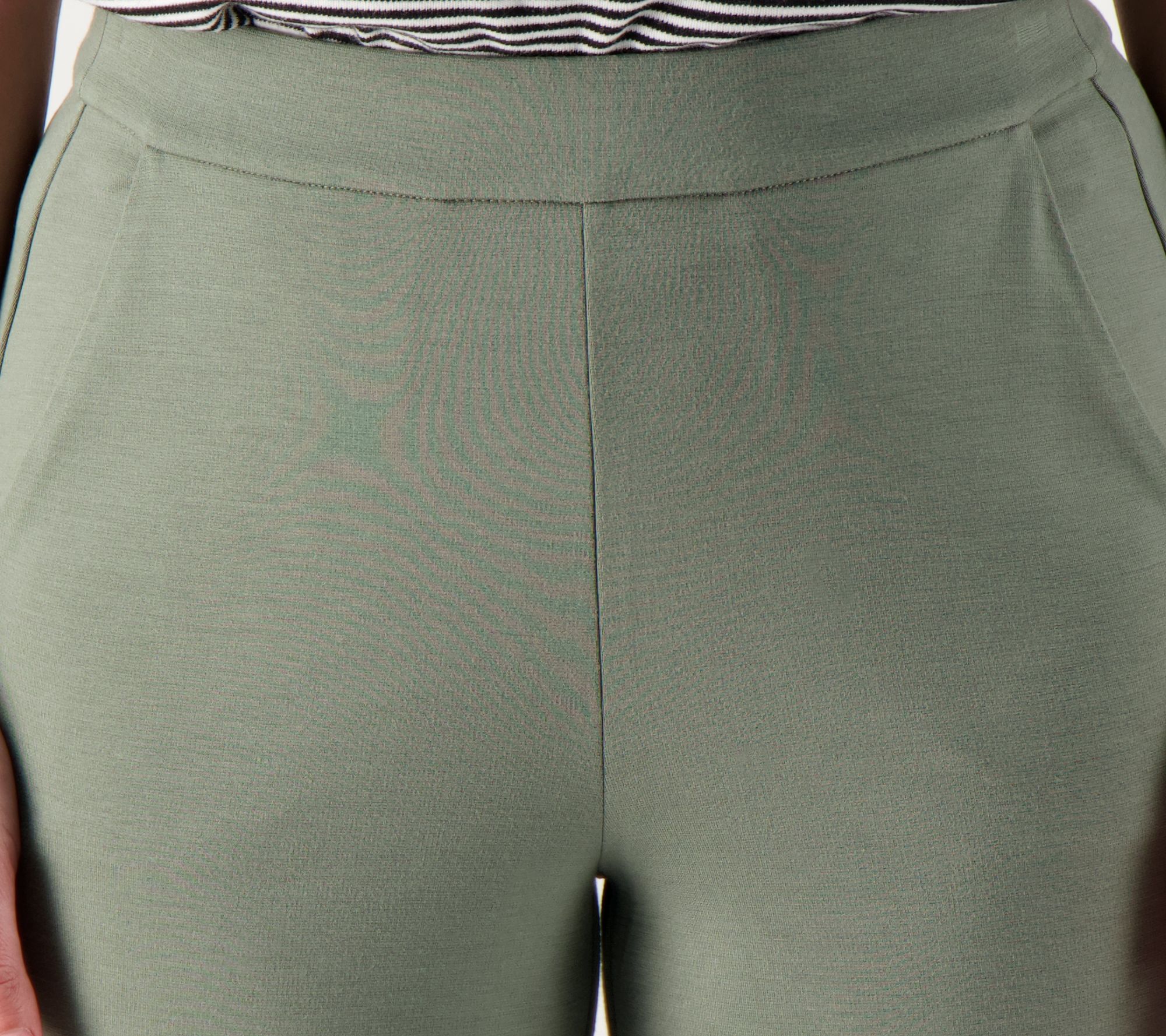 • Features: encased elastic waistband, functional slash pockets, forward side seam with exposed non-functional pearl buttons