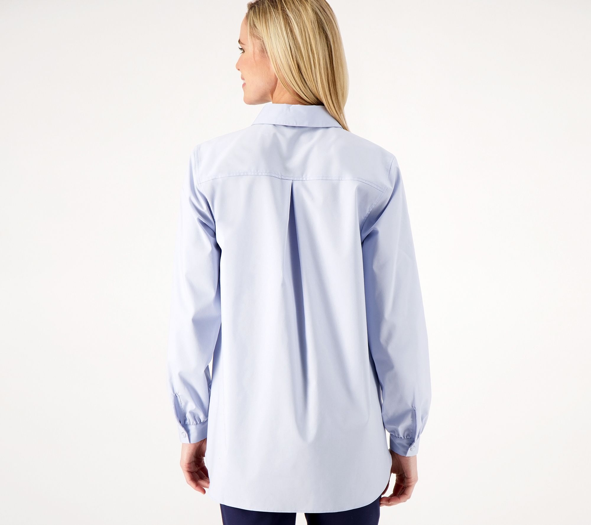 "As Is" Isaac Mizrahi Live Regular Stretch Woven Oversized Tunic w/ Snaps