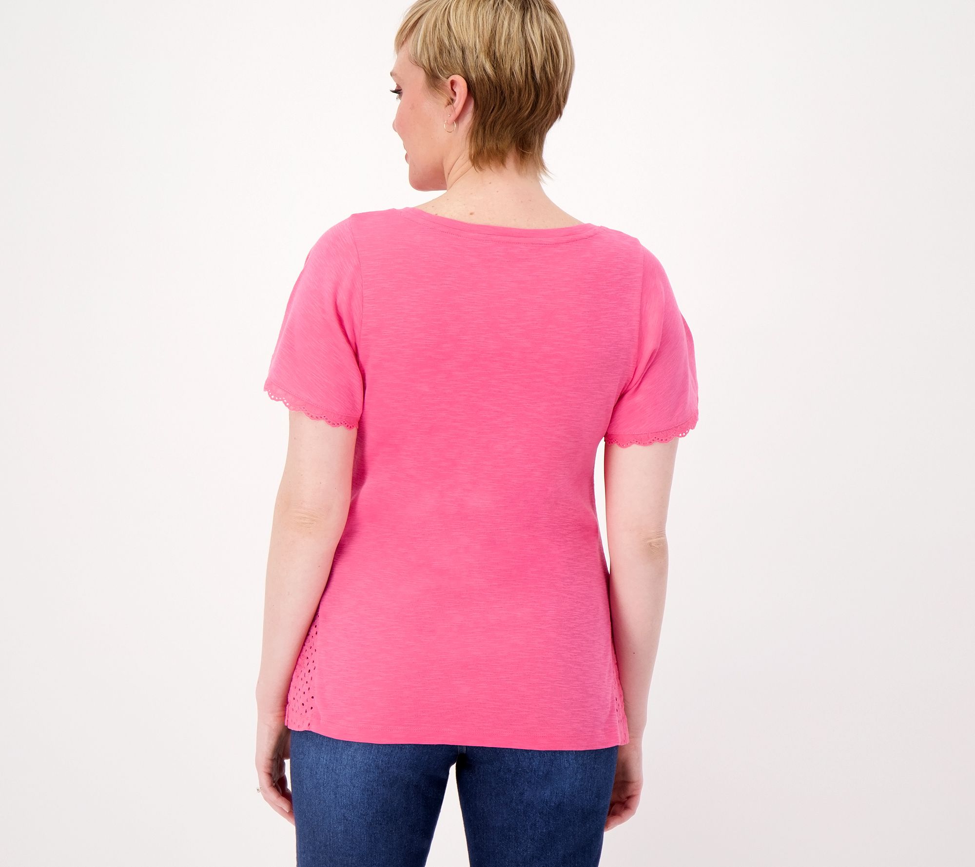 "As Is" Isaac Mizrahi Live Slub Jersey Top with Eyelet Insets