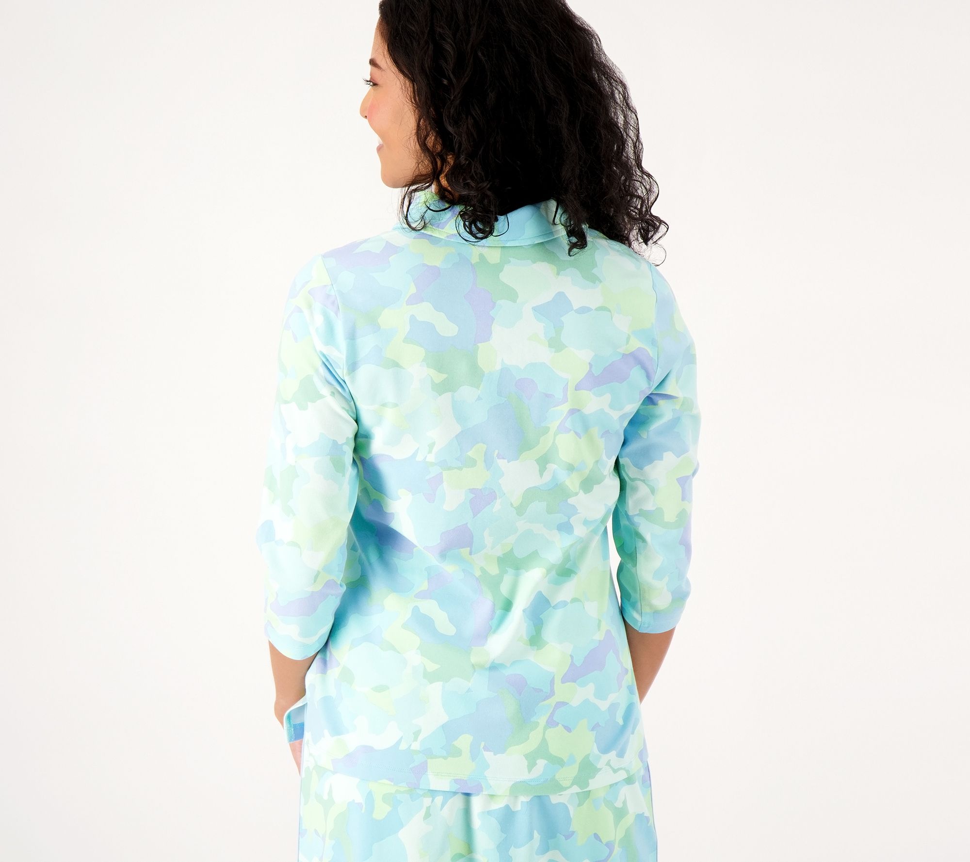 "As Is" Isaac Mizrahi Live Soho Camo Printed Half Zip Polo