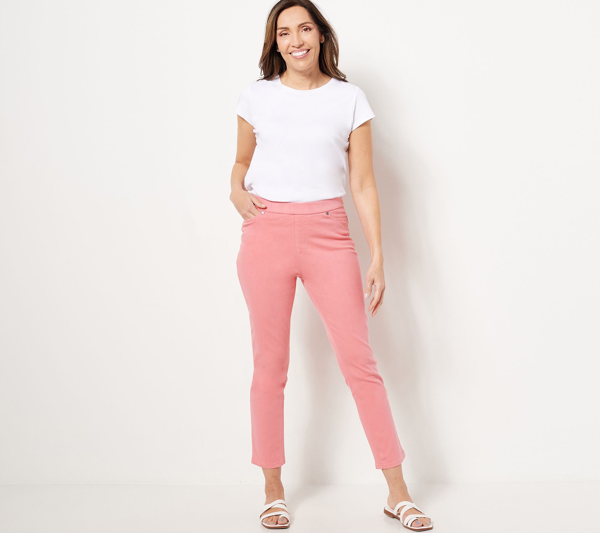 With the look of jeans and the feel of soft lounge pants, these incognito-cozy pants go well with dressy blouses and ribbed knit tees alike! With a breezy cropped length, they're perfect for showing off your new season's sandals and cork wedge heels on a balmy night on vacation or a quick trip to the store! From Isaac Mizrahi Live!TM.This product may be a customer return, vendor sample, or on-air display and is not in its originally manufactured condition. It may not be new. In some instances, these items are repackaged by QVC.