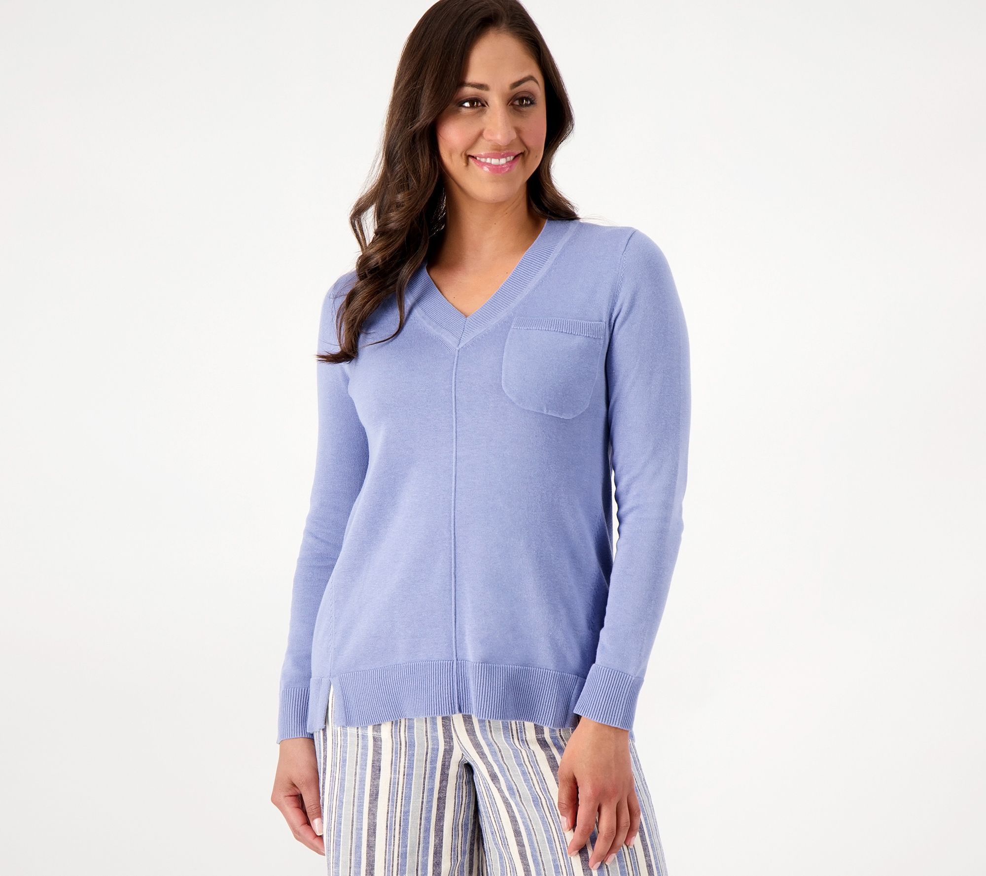 "As Is" Isaac Mizrahi Live V-Neck Sweater with Chest Pocket