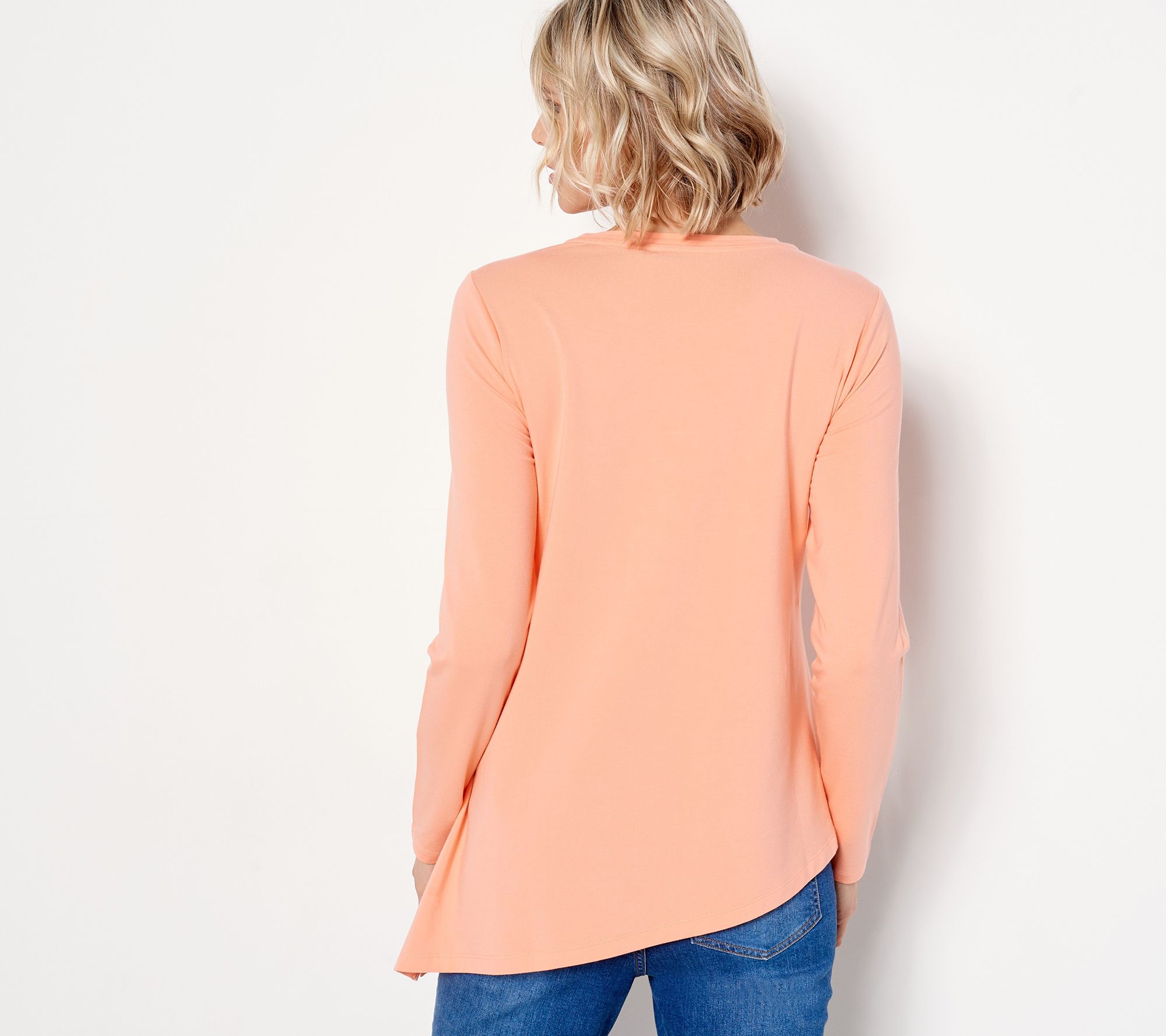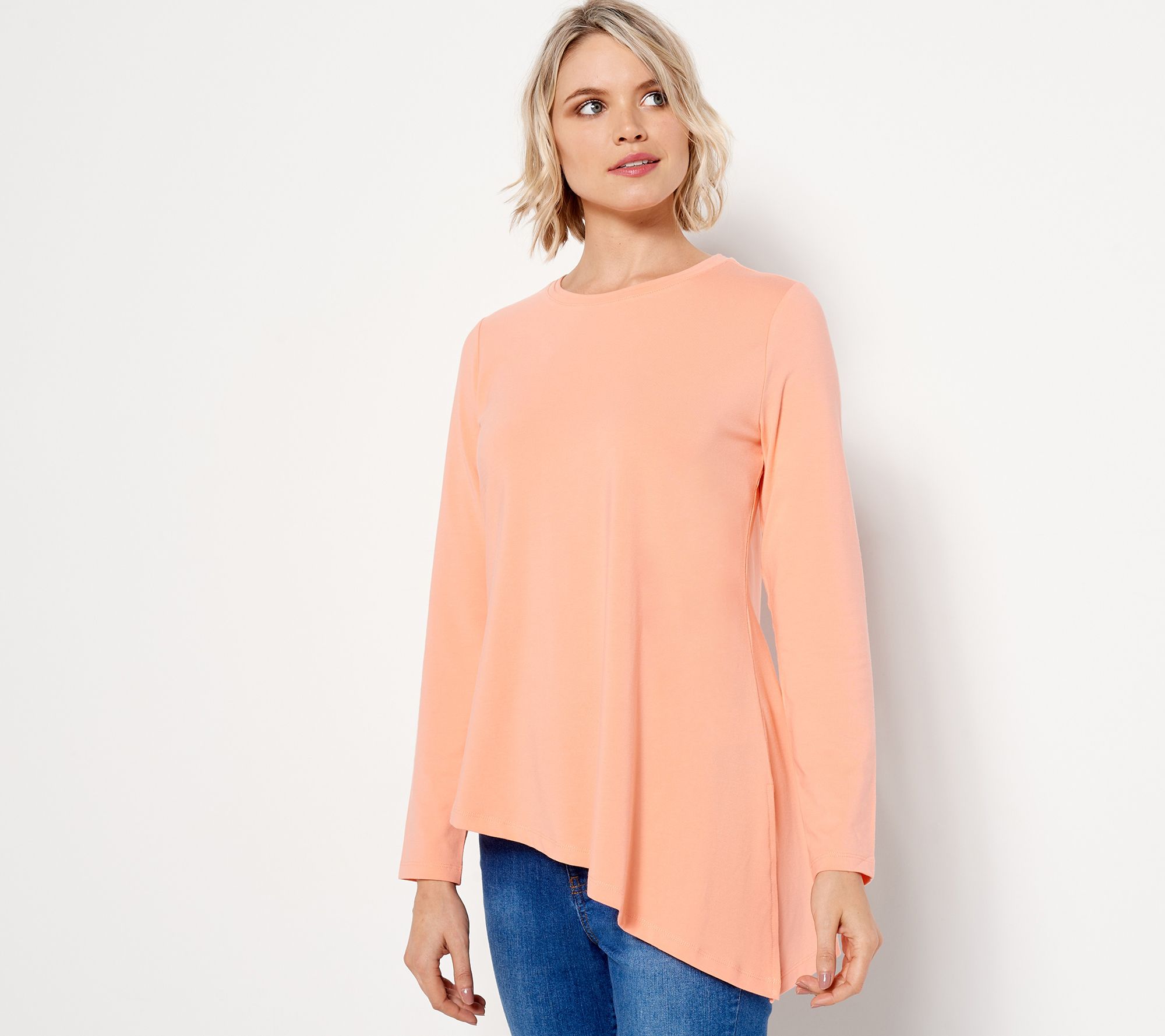 Isaac threw some pizazz onto the classic long-sleeve top and we love it! The asymmetric hem adds just the right amount of subtle flair to a top that we already adore. From Isaac Mizrahi Live!TM.
