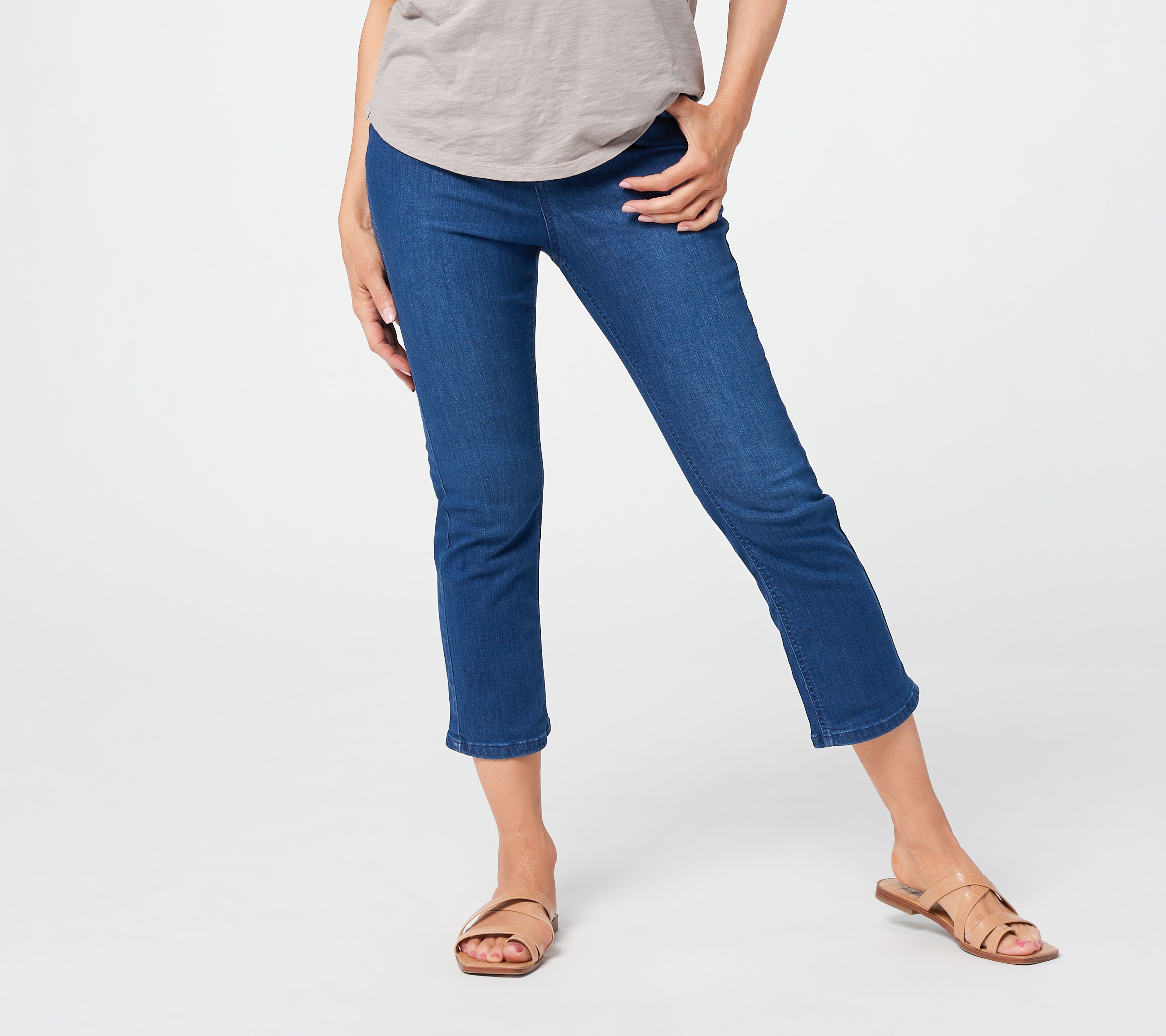 "As Is" Issac Mizrahi Live! Petite True Denim Crop Pull On Boot Jeans