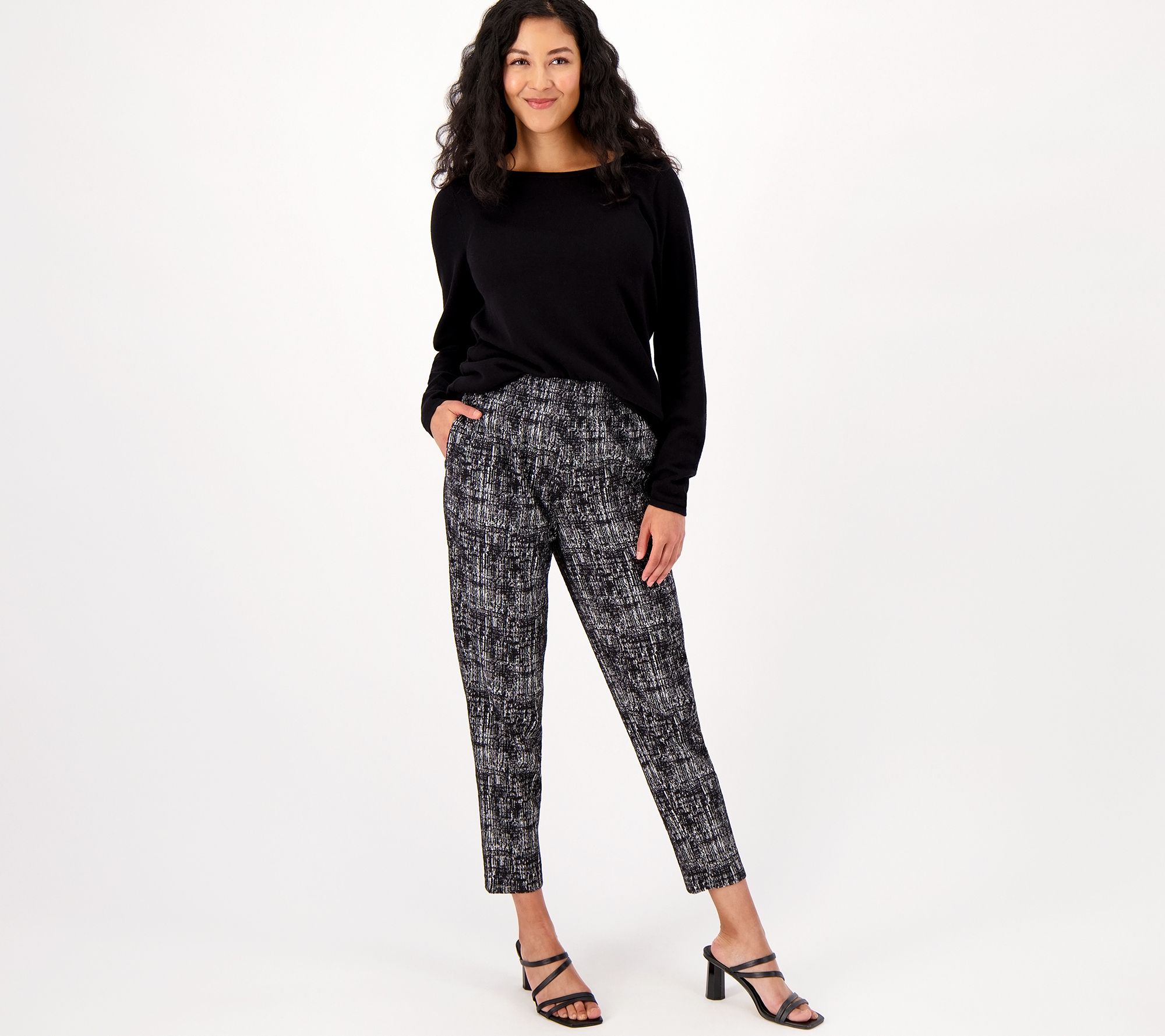 "As Is" J Jason Wu Regular Plaid Knit Pull On Ankle Pants