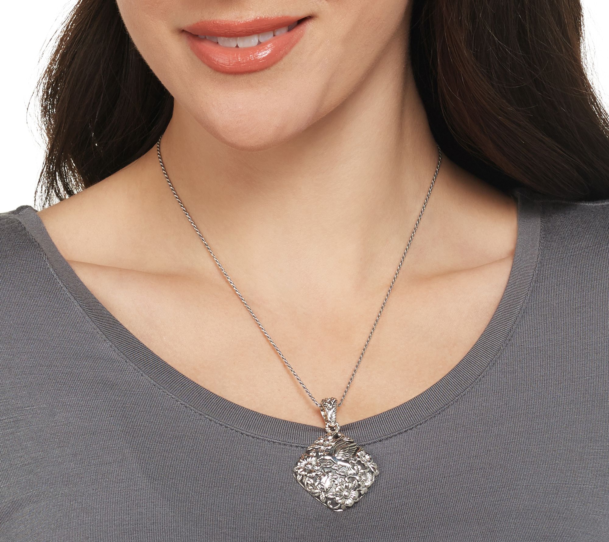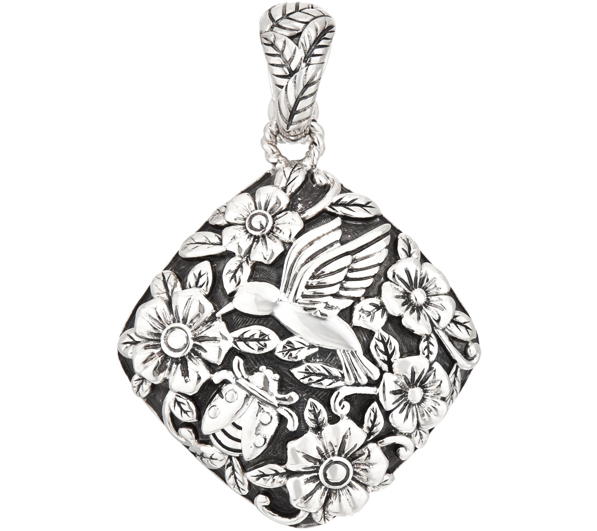 You'll delight in this garden party--no RSVP required! The lovely sterling silver enhancer features raised carvings of flowers and leaves, as well as a ladybug and hummingbird. From JAI.